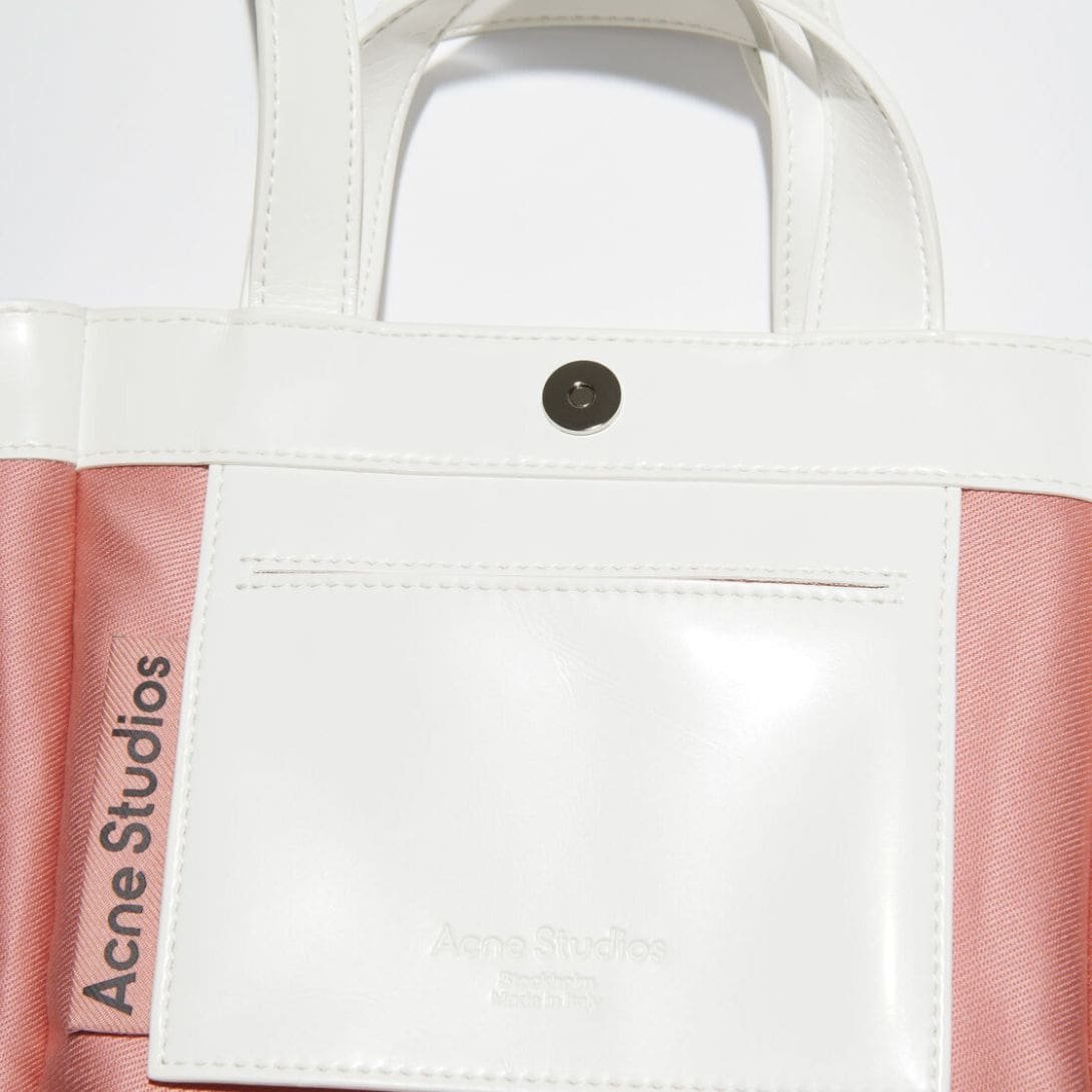 A standout feature of this mini shoulder tote is the prominently displayed Acne Studios logo, embossed or printed on the front. This branding element adds a touch of sophistication and instantly identifies the bag as a product of the renowned fashion house. The bag includes a top handle for easy hand carrying, as well as a detachable shoulder strap, allowing for versatile styling options. Whether worn over the shoulder, crossbody, or carried by hand, the bag offers flexibility to suit different occasions and personal styles.