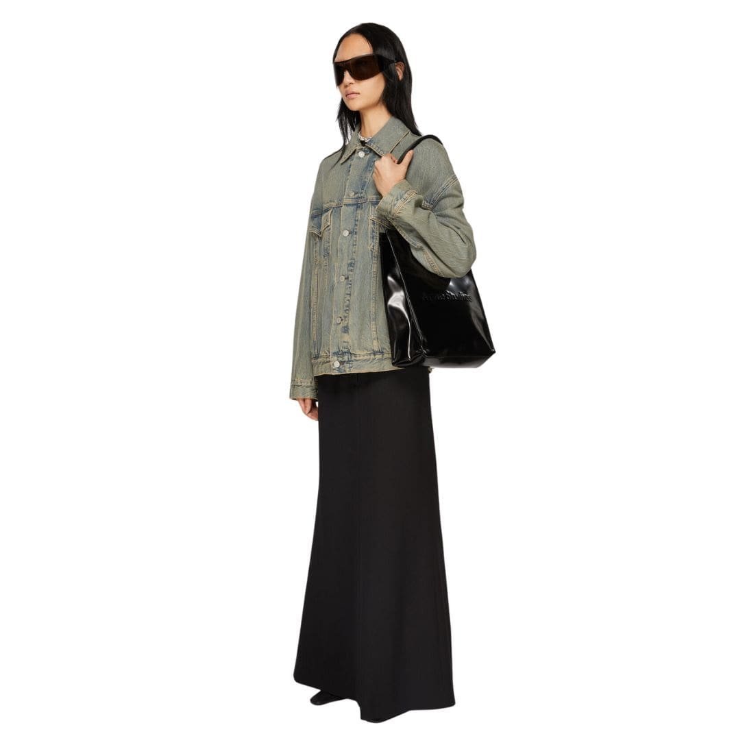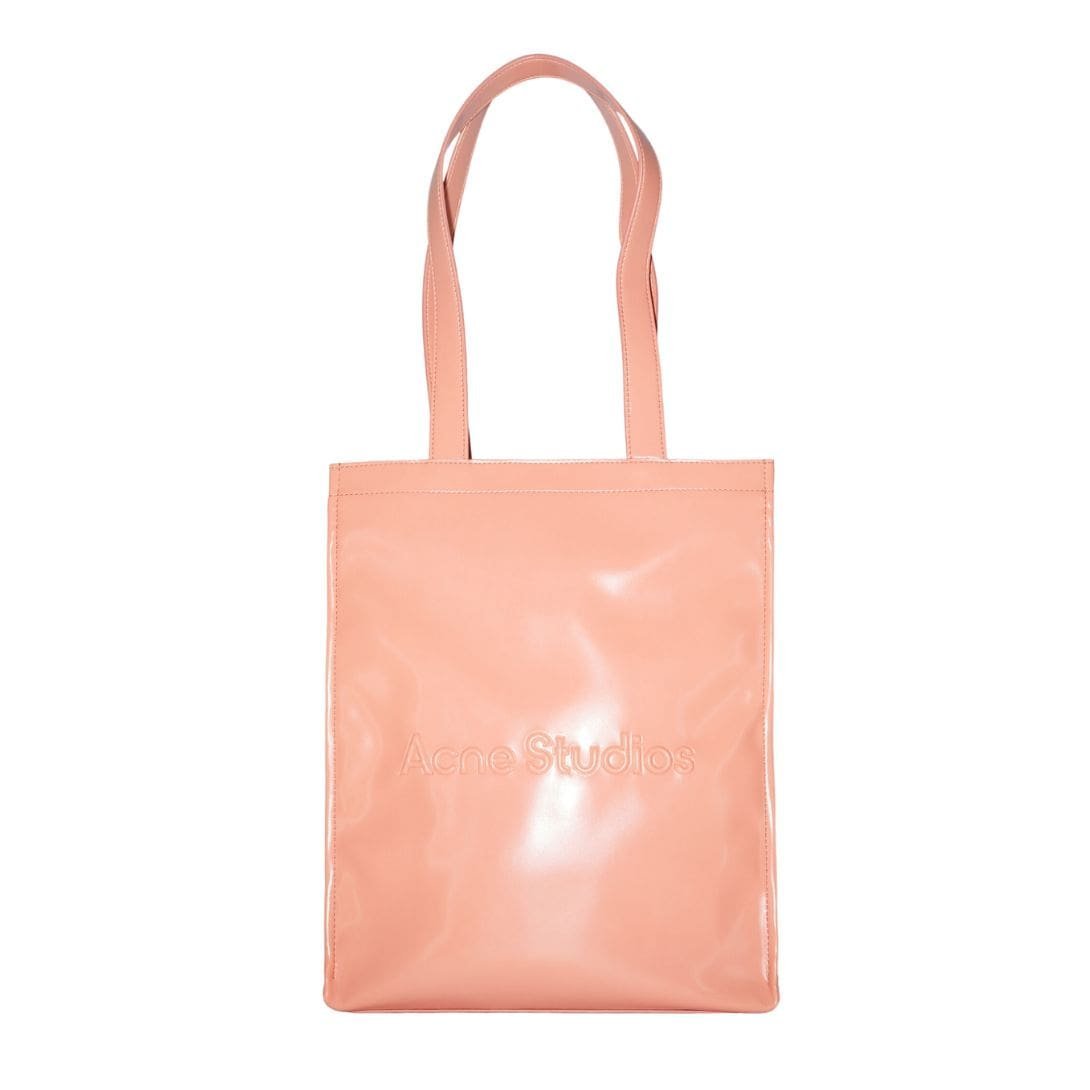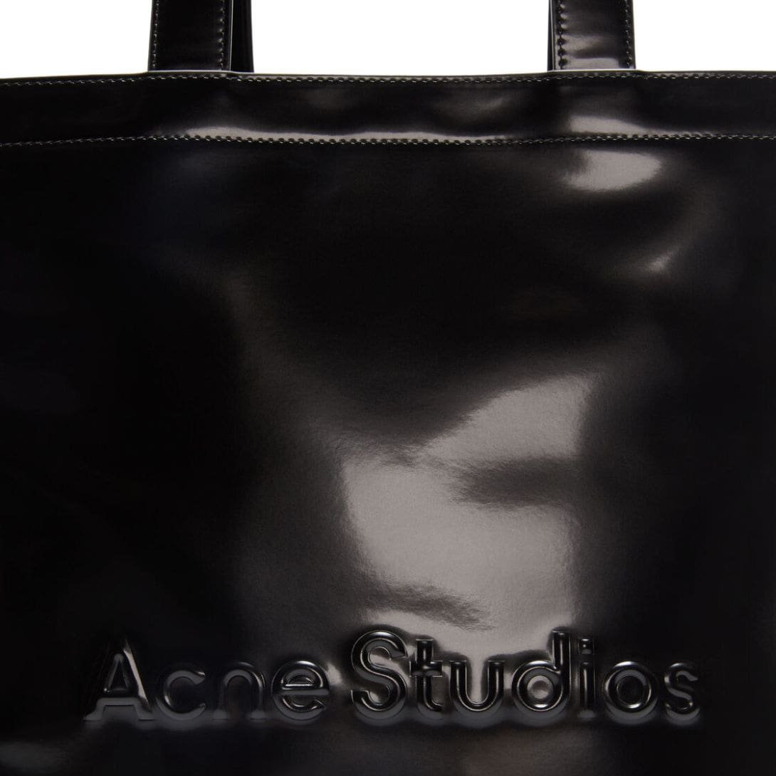 A standout feature of this bag is the bold Acne Studios logo emblazoned on the front, making a stylish statement and showcasing the brand’s identity. The logo is printed in a contrasting color, adding a touch of visual interest to the bag’s otherwise understated design. This iconic branding element makes the bag instantly recognizable and adds a modern edge to the classic tote style.