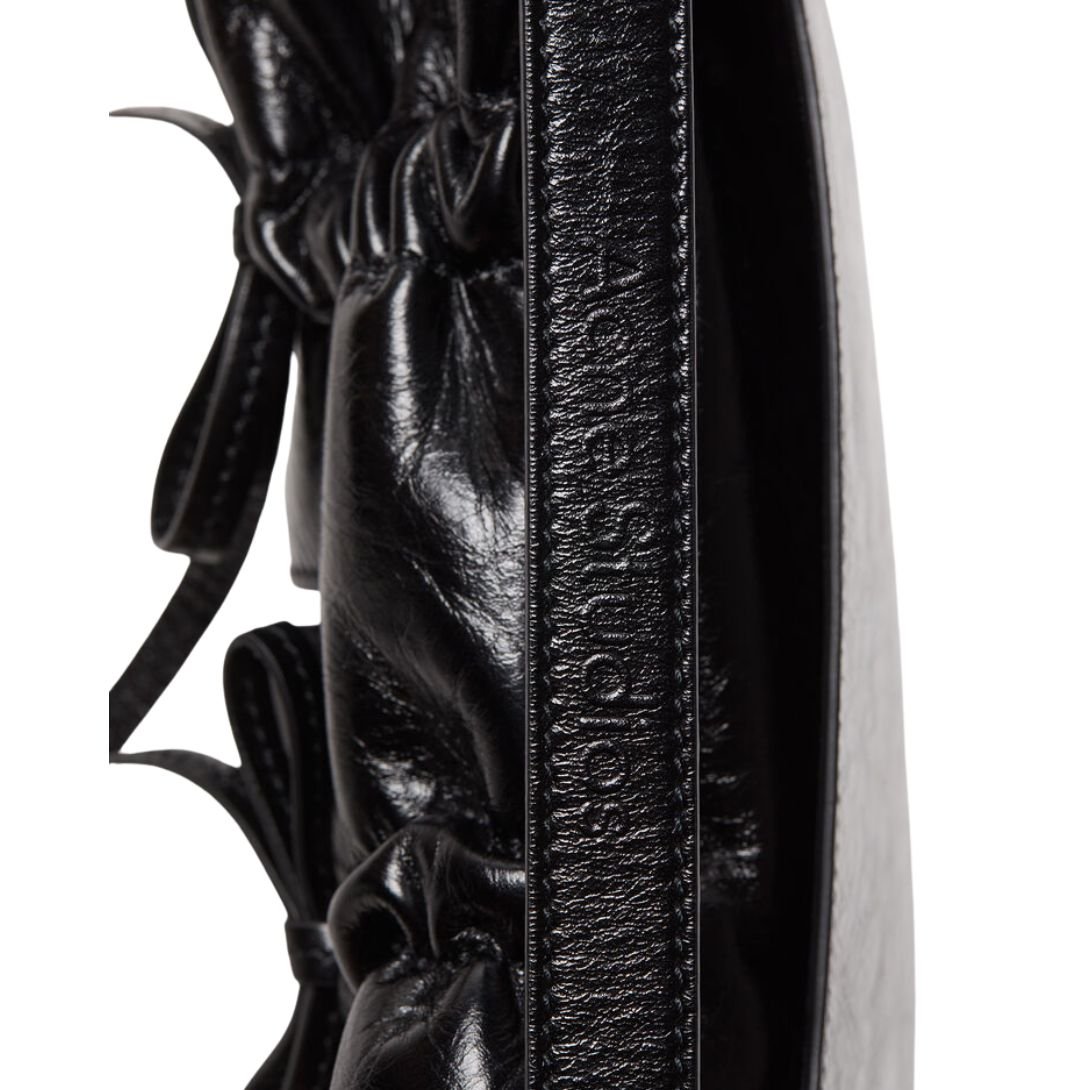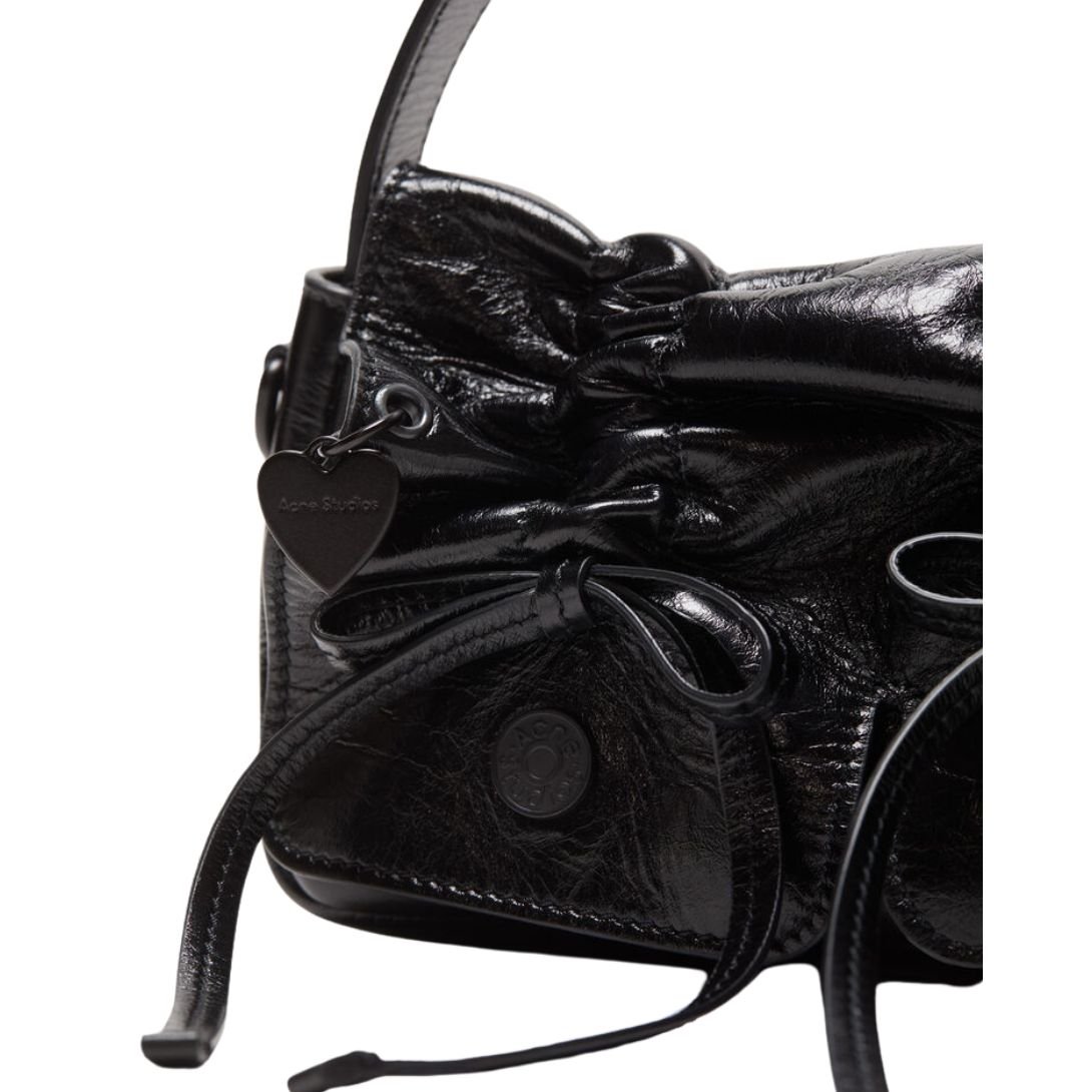A statement in minimalist utility, the Multipocket Micro Crossbody Lux by Acne Studios redefines compact sophistication with its structured silhouette and sculptural detailing. Crafted in semi-shiny calf leather, this micro bag features laced knot accents and a cleverly constructed multi-pocket design, merging fashion-forward aesthetics with everyday practicality.