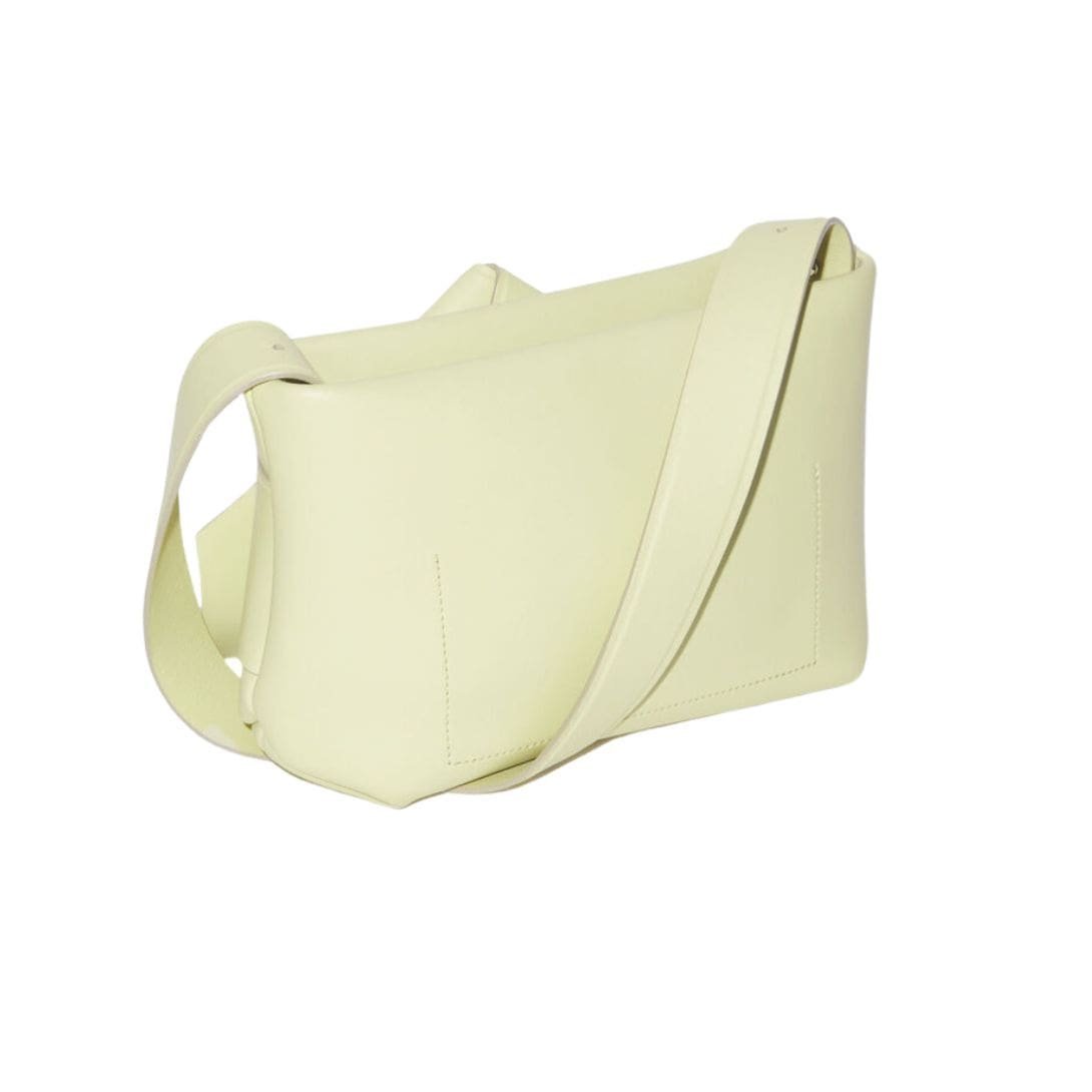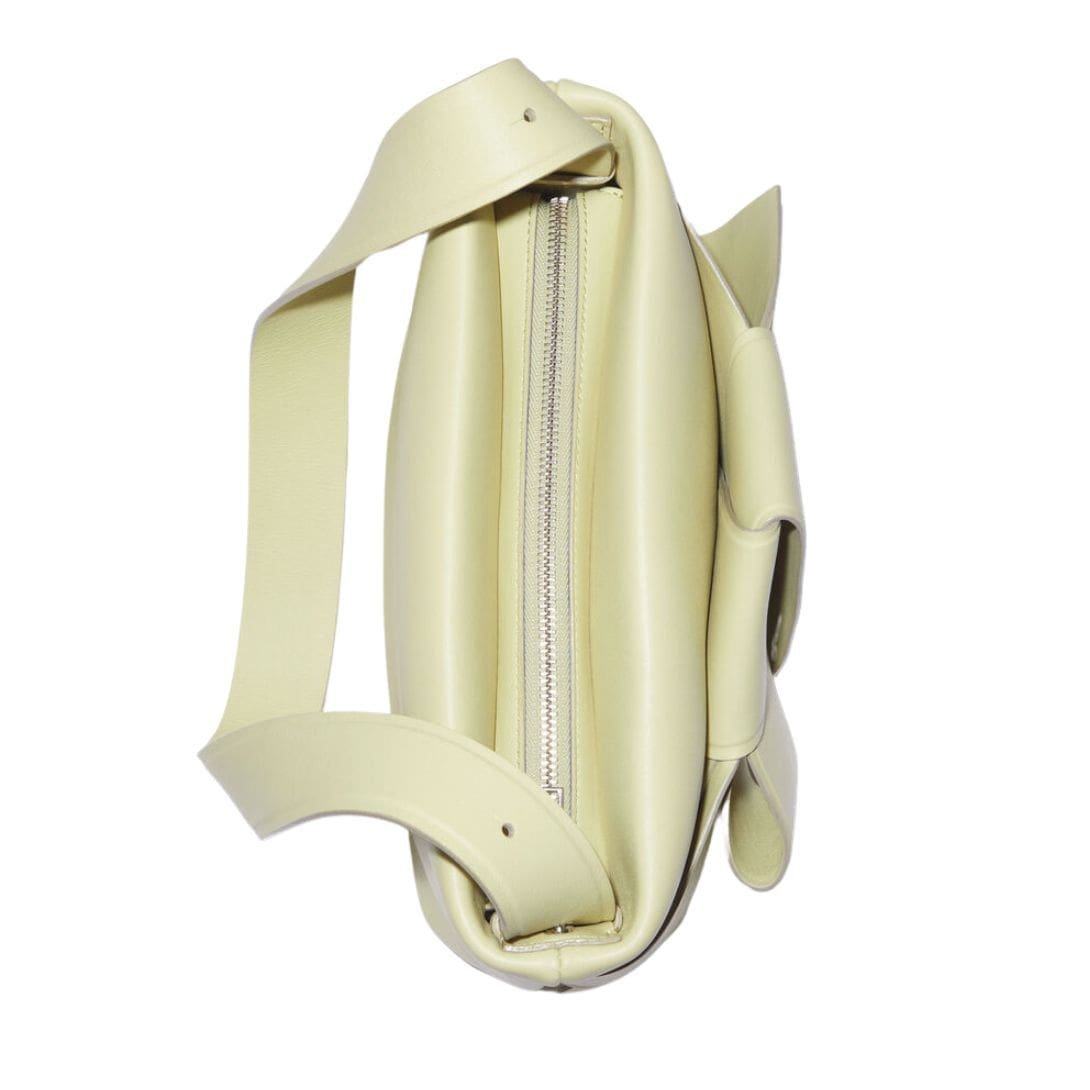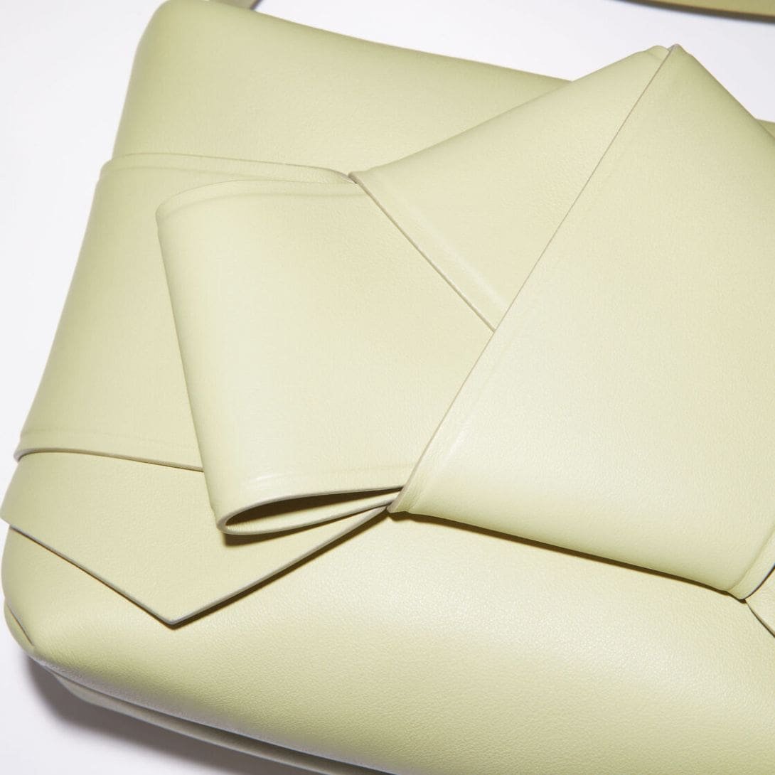 At first glance, the bag’s silhouette captivates with its sleek lines and geometric form, exuding a sense of understated luxury. Its structured shape is reminiscent of origami, showcasing a harmonious balance between simplicity and sophistication. The Musubi Shoulder Bag is a testament to Acne Studios’ commitment to reimagining classic designs with a contemporary twist.