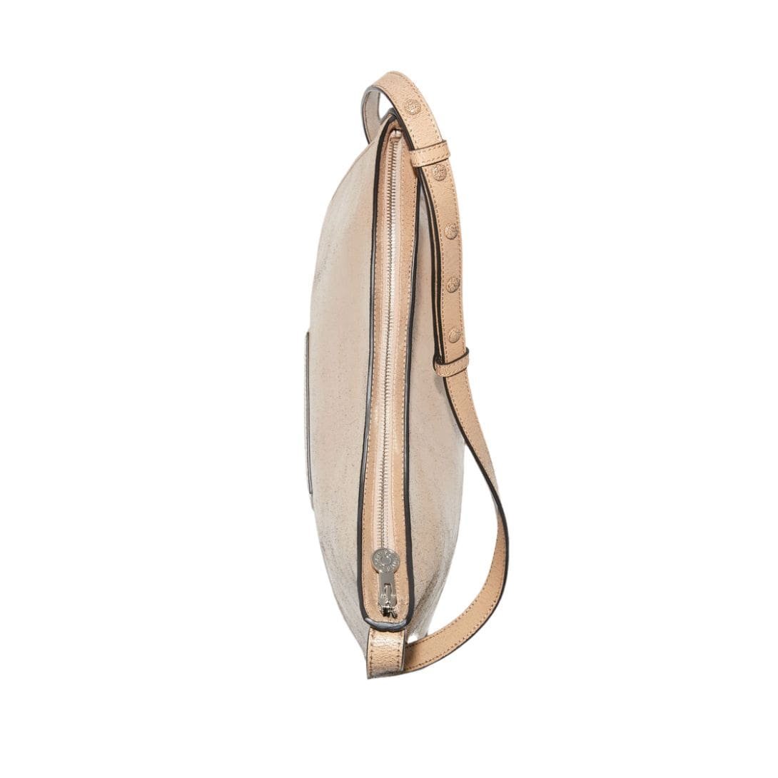 The bag features a top zip closure, providing security and easy access to your belongings. Inside, the spacious main compartment is lined with a soft fabric, offering ample room for daily essentials such as a wallet, phone, keys, and makeup. An internal zip pocket adds an extra layer of organization, allowing you to keep smaller items neatly stored and within reach.