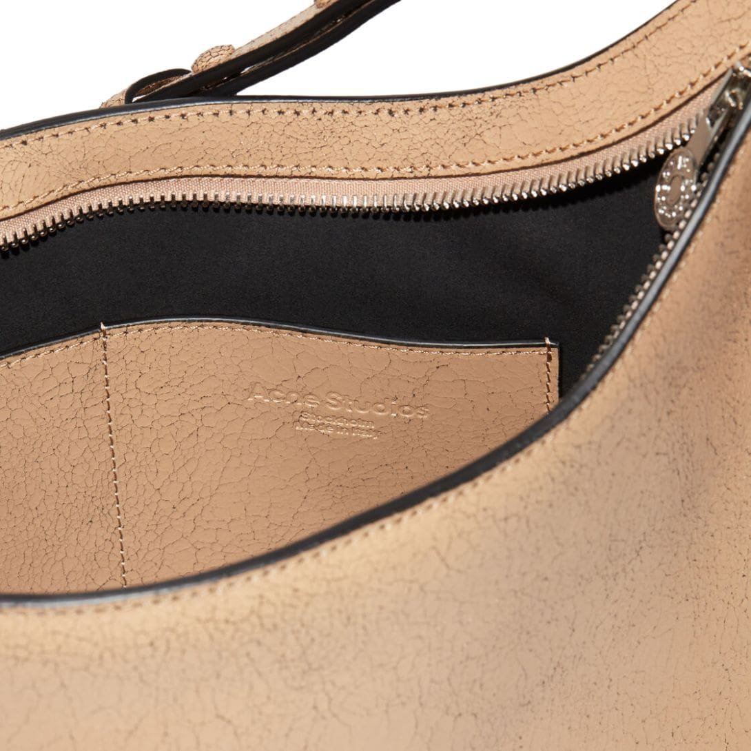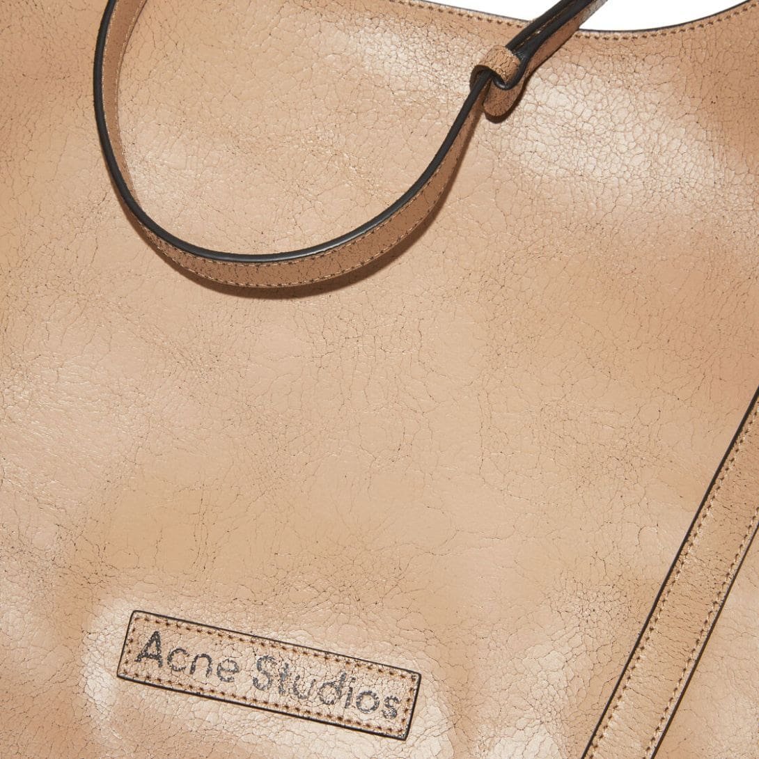 The exterior design is minimalist yet distinctive, with subtle branding in the form of a small, embossed Acne Studios logo. This understated detail adds a touch of elegance without overpowering the bag’s clean lines and sophisticated aesthetic.