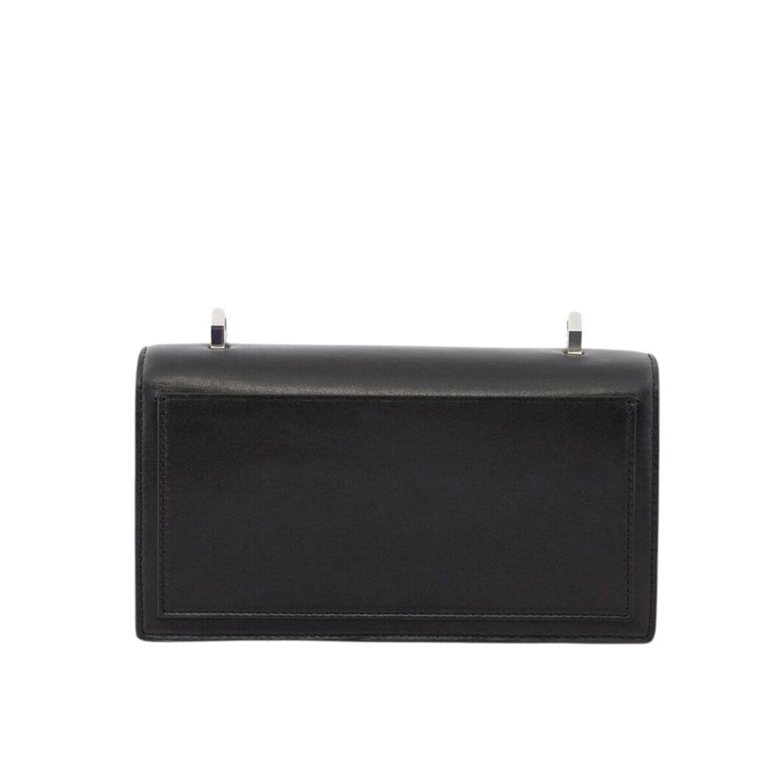 The detachable and adjustable leather and cotton webbing strap, with a 30mm width, ensures comfort and versatility, allowing you to wear the bag as a crossbody or shoulder bag. The brass hardware with antique silver finishing enhances the bag’s sophisticated aesthetic.