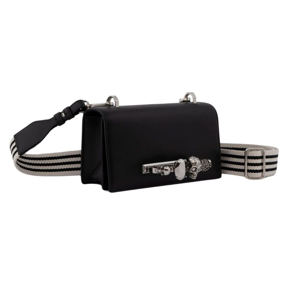 This Alexander Mcqueen Mans The Knuckle Satchel In Black bag, made in Italy, combines luxury with practicality, making it a versatile accessory for any occasion. Measuring 21.5 x 12 x 5.5 cm (8.2 x 4.7 x 2.1 inches), it is compact yet spacious enough to accommodate your essentials, including smartphones. The bag features a strap drop that ranges from 40 to 70 cm (15.7 to 27.5 inches), providing flexible carrying options.