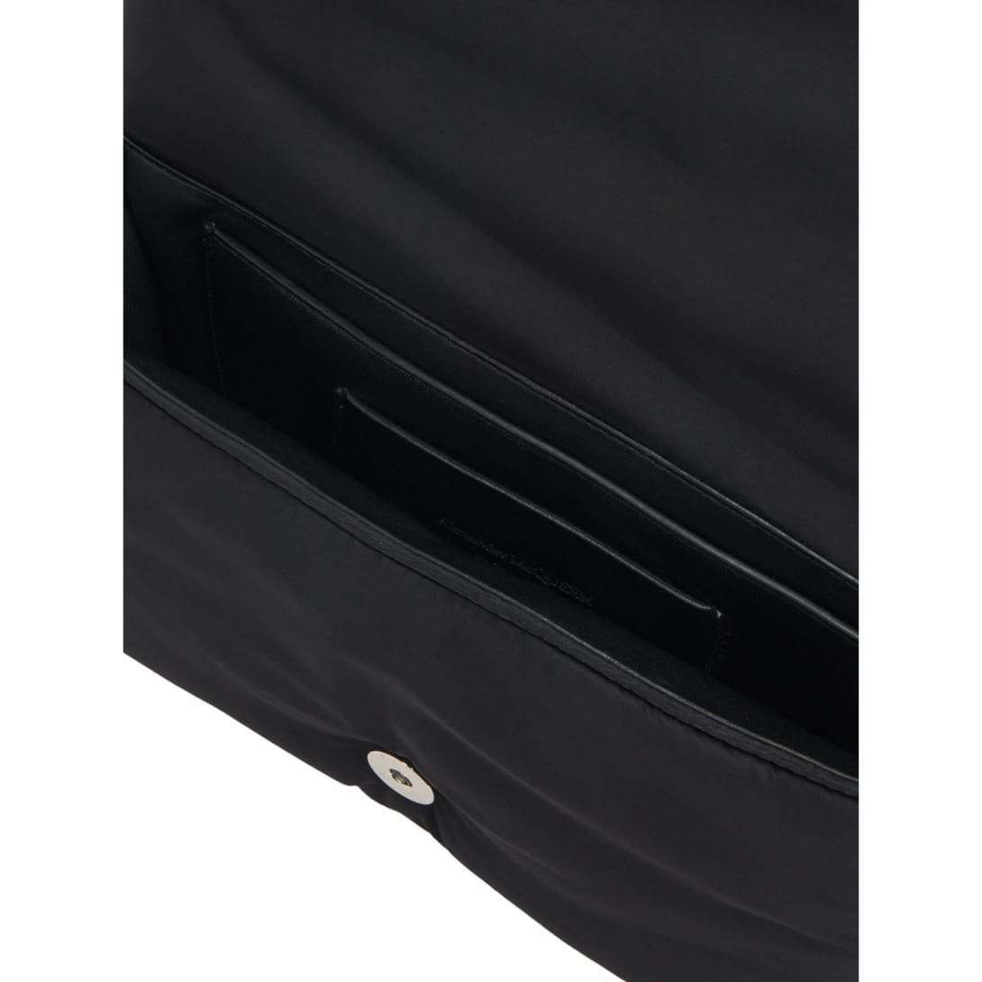 The adjustable and detachable Alexander McQueen Jacquard cotton webbing and leather strap adds versatility to the bag, allowing you to carry it as a crossbody or shoulder bag according to your preference. The eco brass hardware with antique silver finishing enhances the bag’s elegant aesthetic, highlighting its refined craftsmanship.