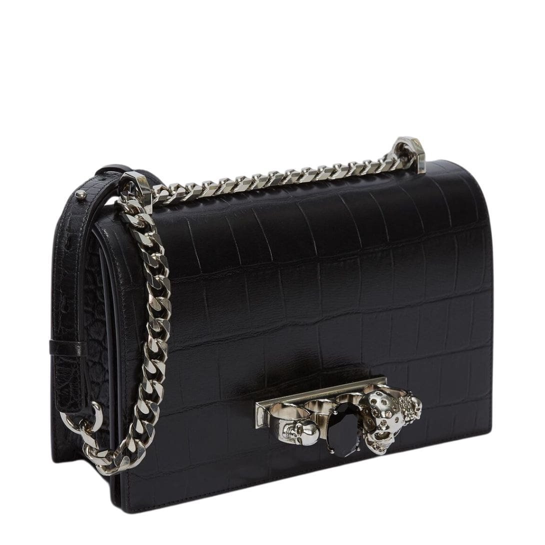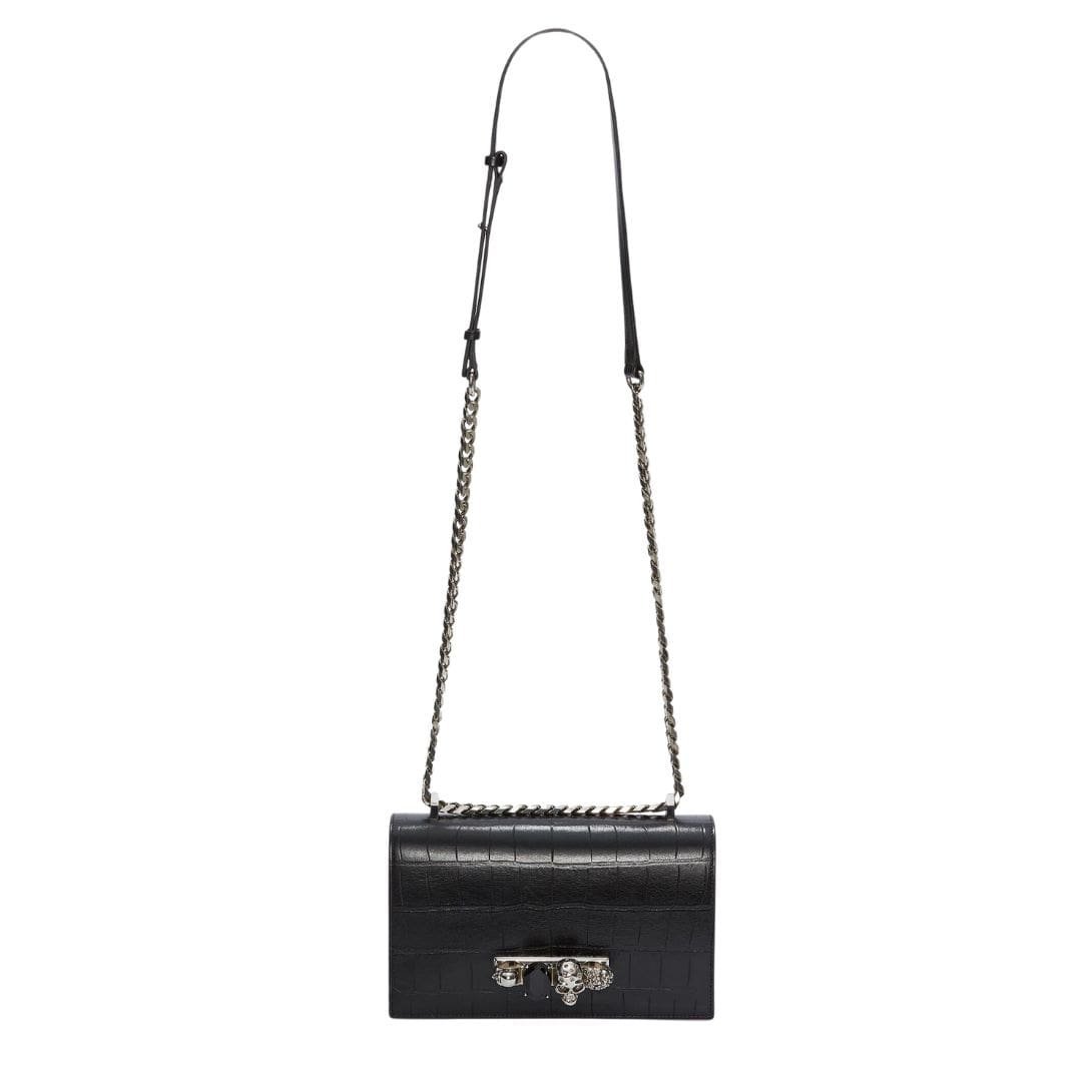 This Alexander Mcqueen Womans Jewelled Satchel In Blacksilver  blends elegance with practicality, making it a versatile accessory for any occasion. Measuring 24 x 15 x 8 cm (9.4 x 5.9 x 3.1 inches), it provides ample space for your essentials while maintaining a sleek and stylish profile. The bag features a strap drop of 55 cm (21.6 inches), offering a comfortable fit for shoulder or crossbody wear.