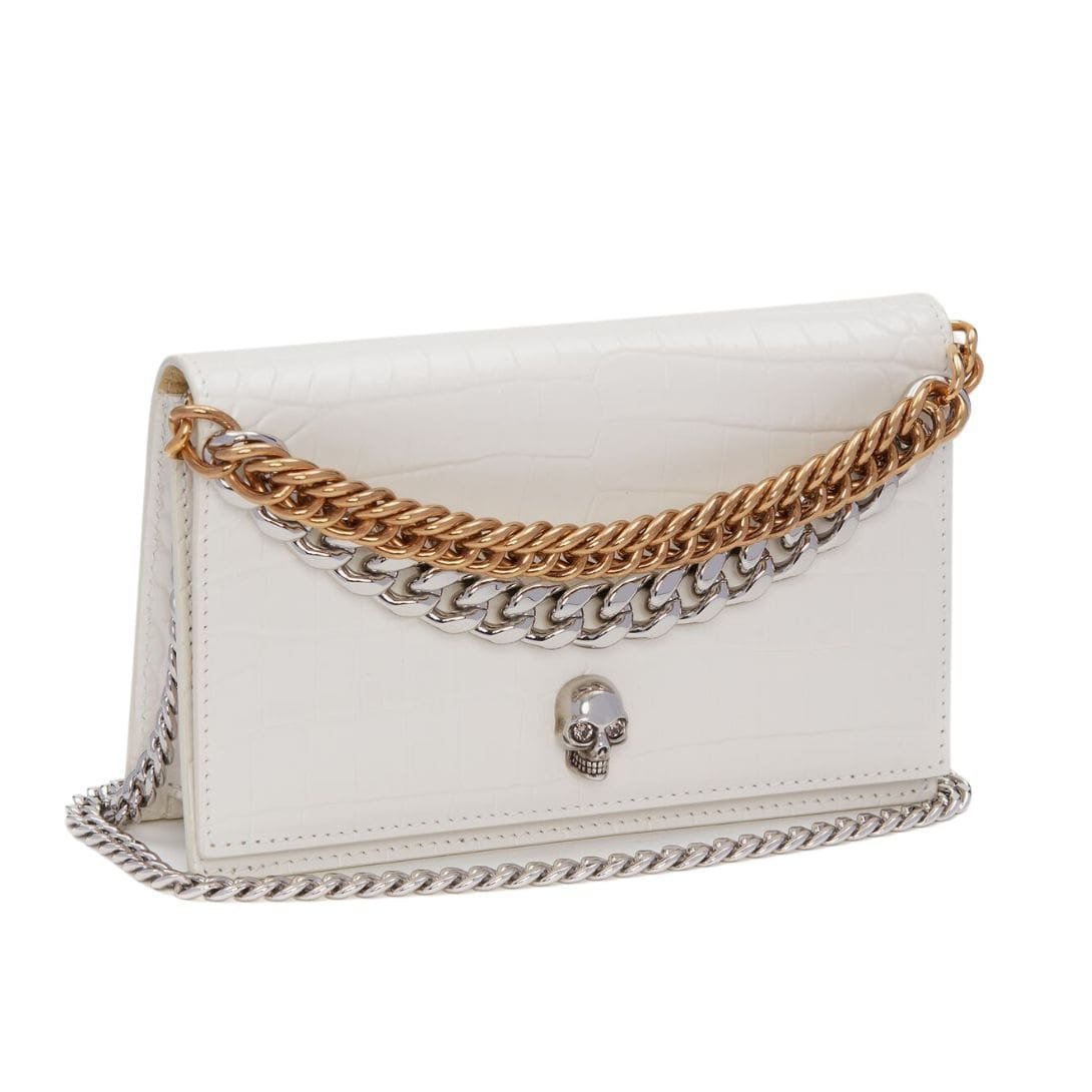 ALEXANDER MCQUEEN WOMANS SMALL SKULL BAG WITH CHAIN IN LVORY