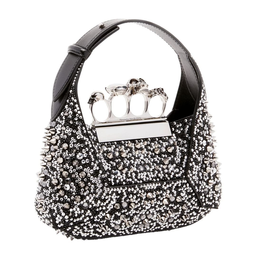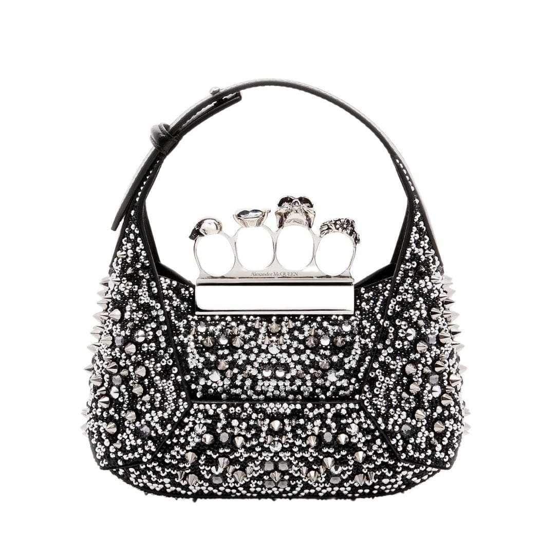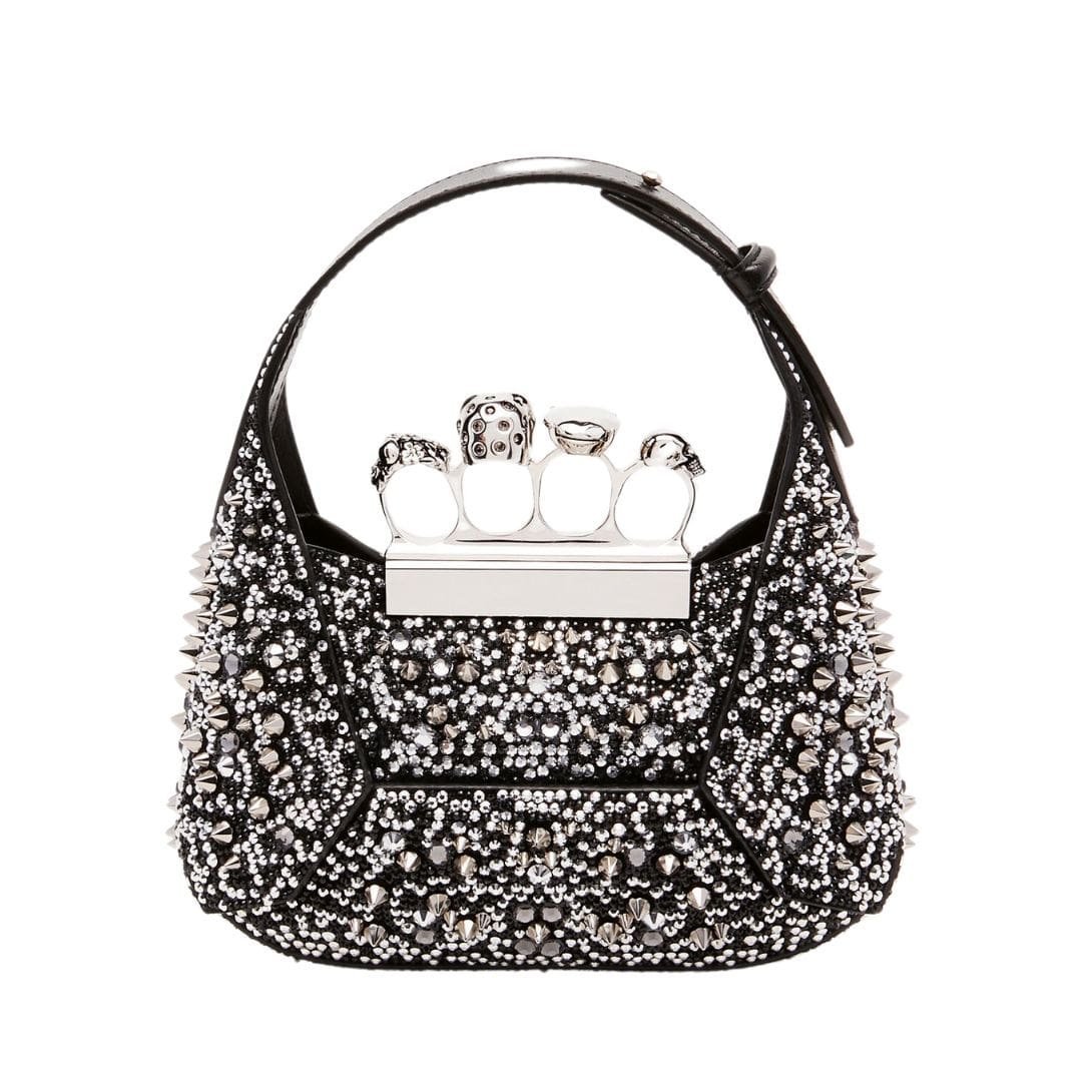 ALEXANDER MCQUEEN WOMENS THE JEWELLED HOBO MINI BAG IN BLACK
