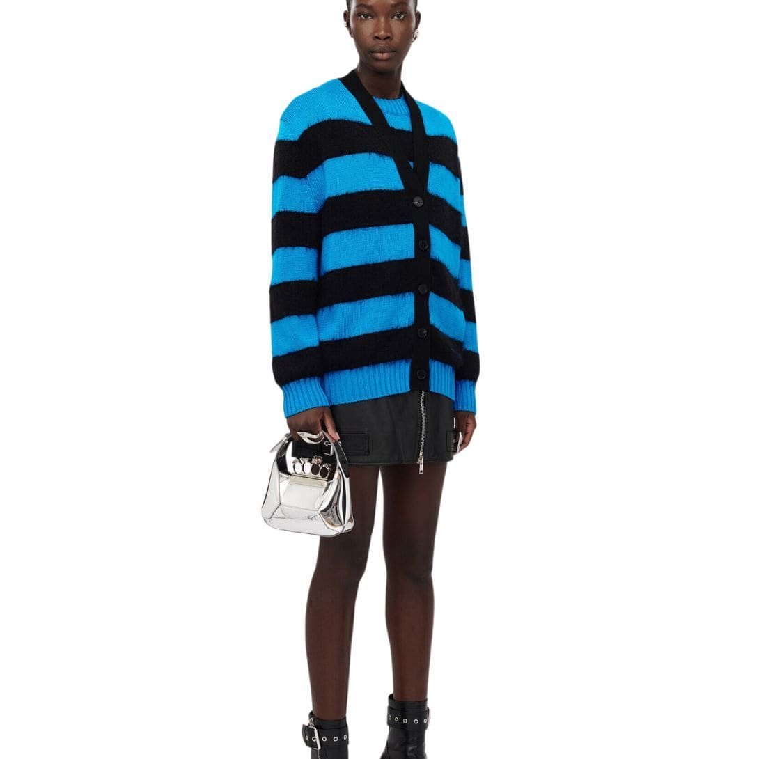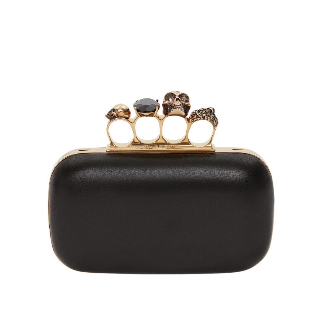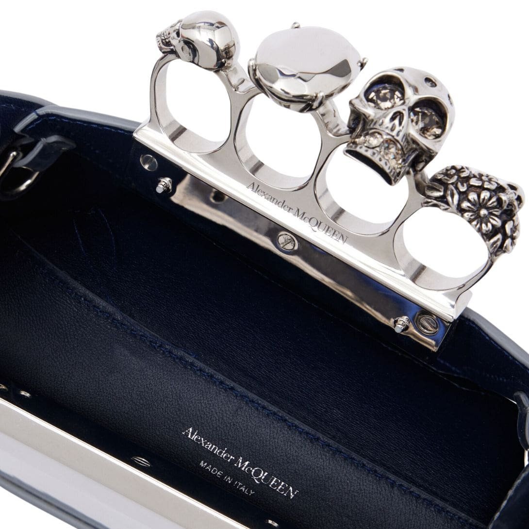 Dimensions: 20 x 12 x 8 cm / 7.8 x 4.7 x 3.1 inches Strap drop: 52 cm / 20.4 inches Silver-finished handle adorned with crystal-encrusted rings Magnetic fastening Detachable chain strap Brass hardware with antique silver finishing Black lining