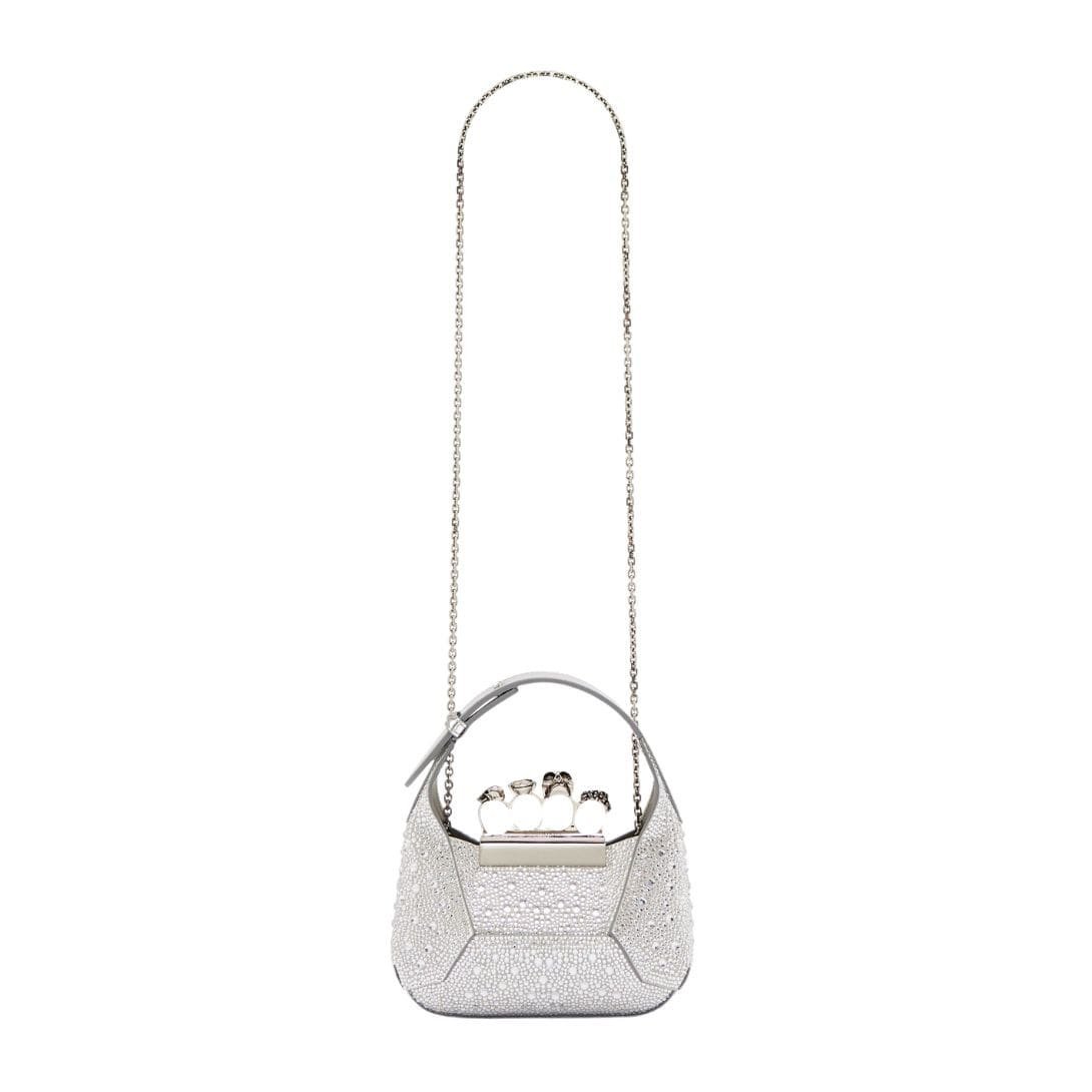 ALEXANDER MCQUEEN WOMENS THE JEWELLED HOBO MINI BAG IN SILVER