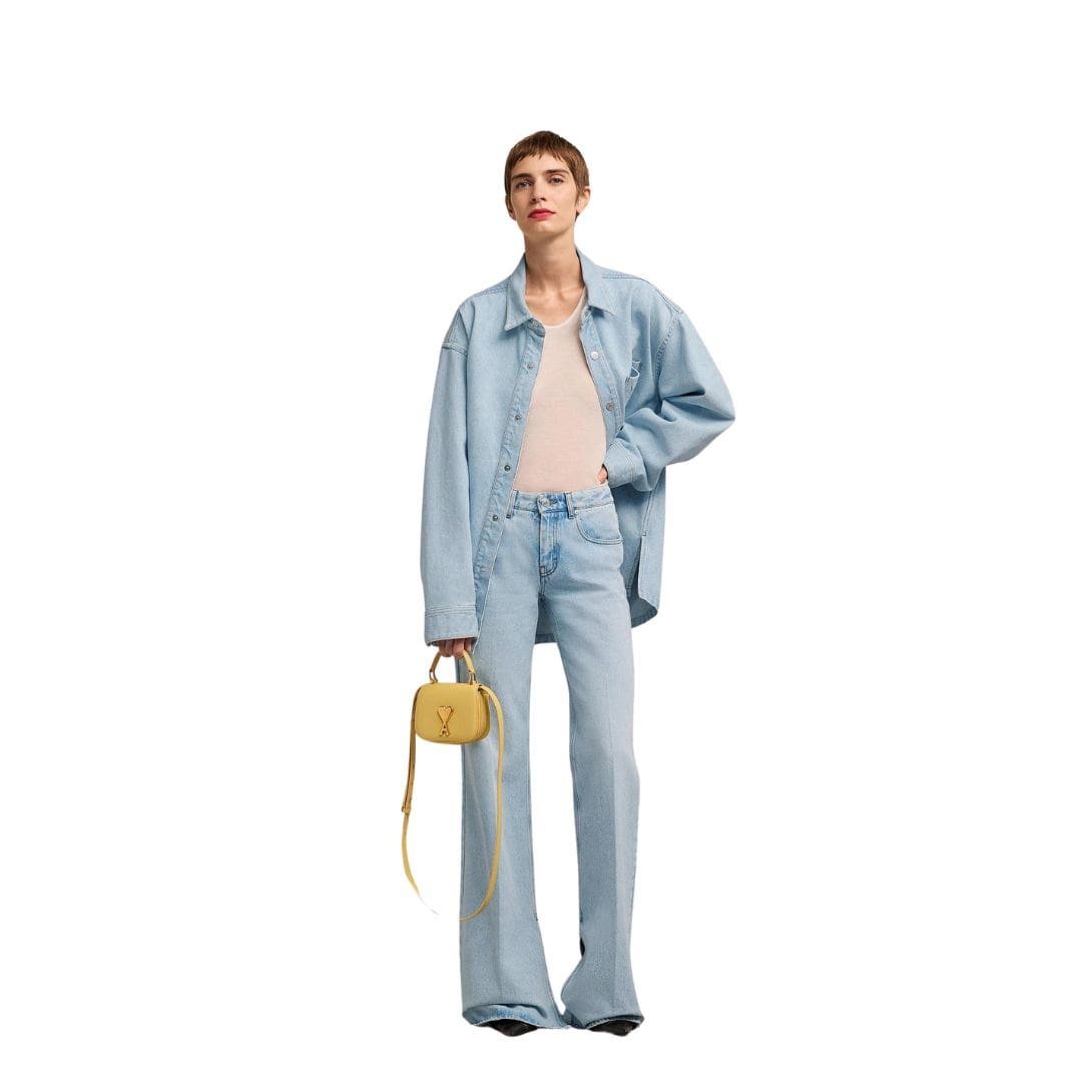 One of the defining features of the Ami Slitted Flare Fit Jeans is the attention-grabbing slit detail at the hem. Strategically placed along the outer seam of each leg, these slits create a dynamic sense of movement, allowing the denim to drape elegantly over shoes and adding a playful twist to the overall look. Whether paired with heels for a night out or sneakers for a casual day of errands, these jeans effortlessly transition from day to night with style and versatility.