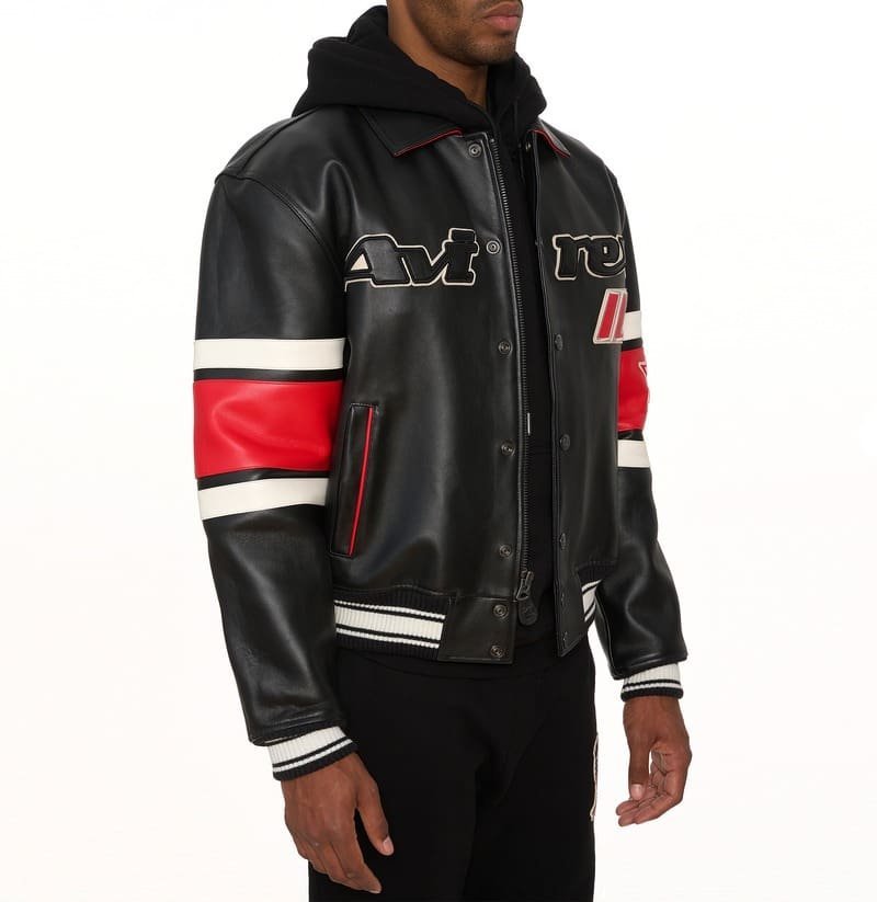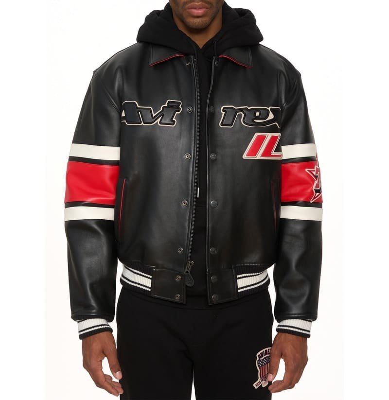Avirex Chicago USA Leather Jacket Black & Red