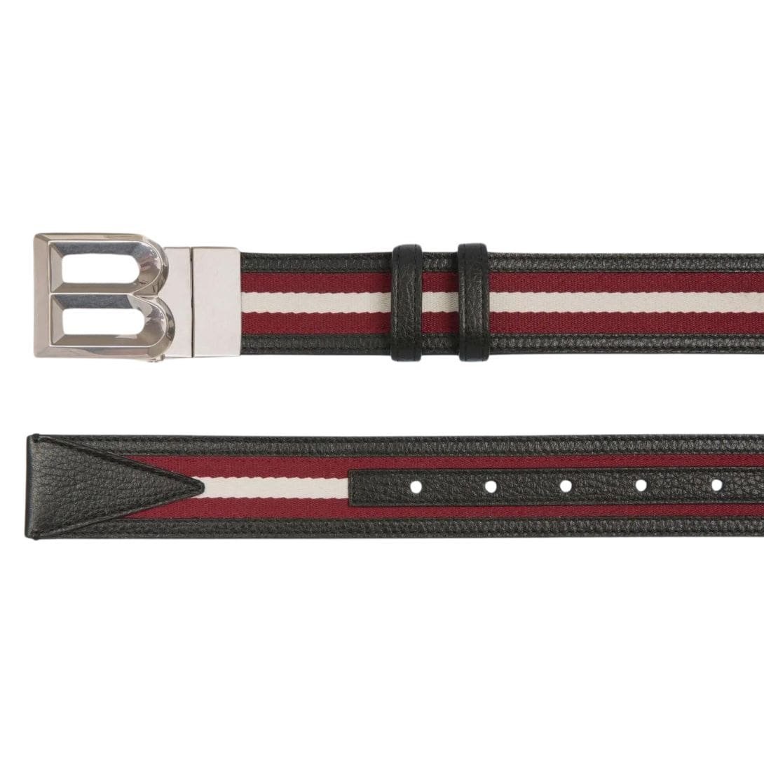 Whether worn with tailored trousers in the boardroom or jeans on the weekend, the Bally B Bold 35mm Reversible Belt in Red White Red Fabric and Leather is a versatile accessory that effortlessly elevates any look. With its impeccable craftsmanship, timeless design, and reversible functionality, it is sure to become a staple in any wardrobe, adding a touch of luxury to every outfit.