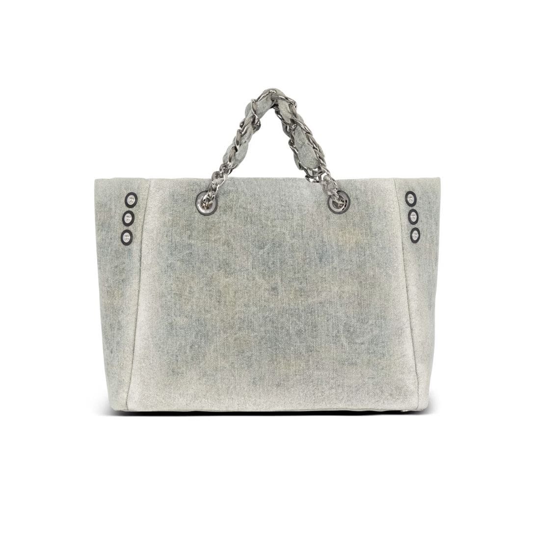 Presenting the Balmain 1945 Soft Faded Denim Tote Bag, a fusion of relaxed elegance and enduring sophistication.