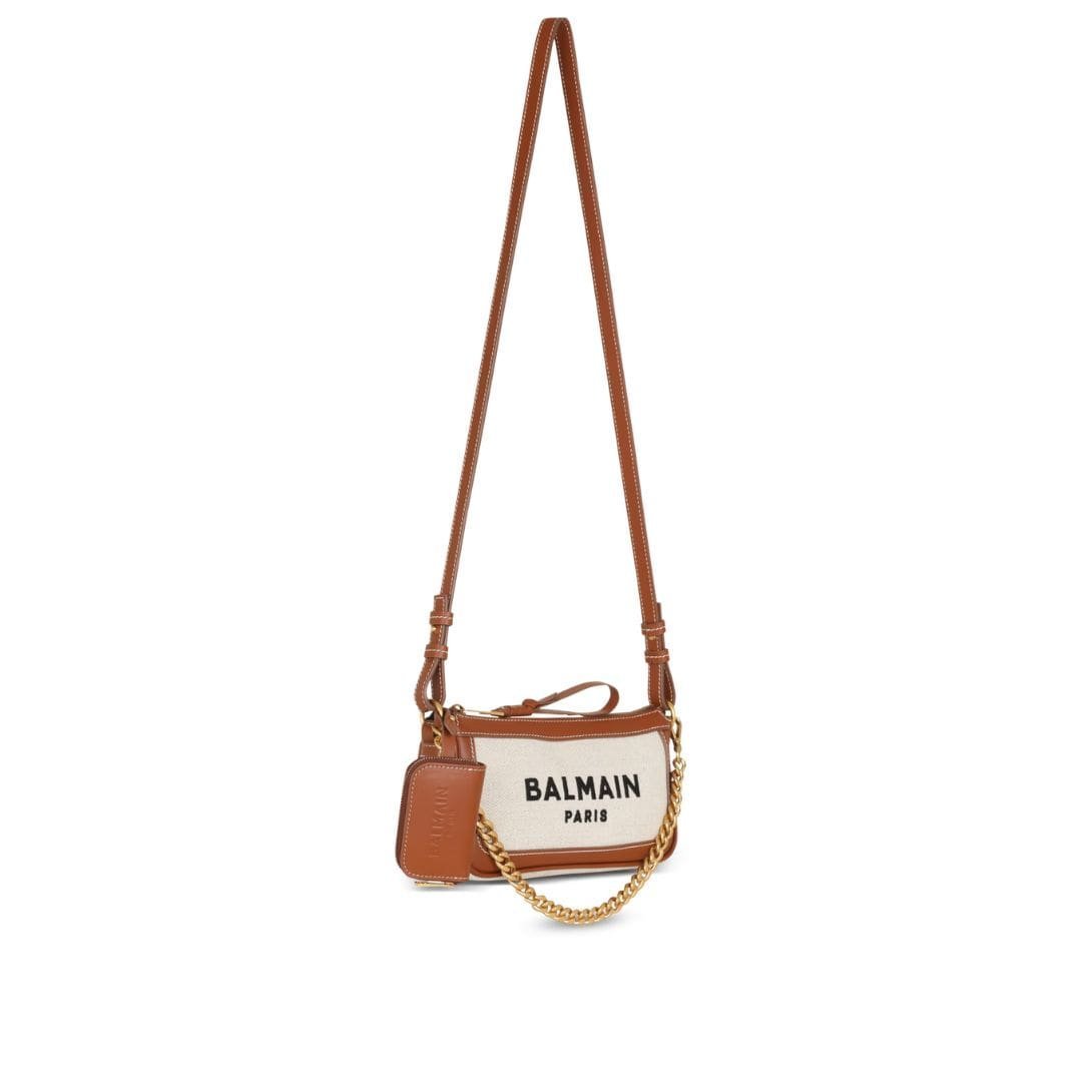 BALMAIN B-ARMY CANVAS CLUTCH BAG WITH LEATHER INSERTS