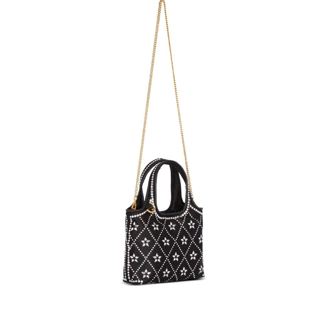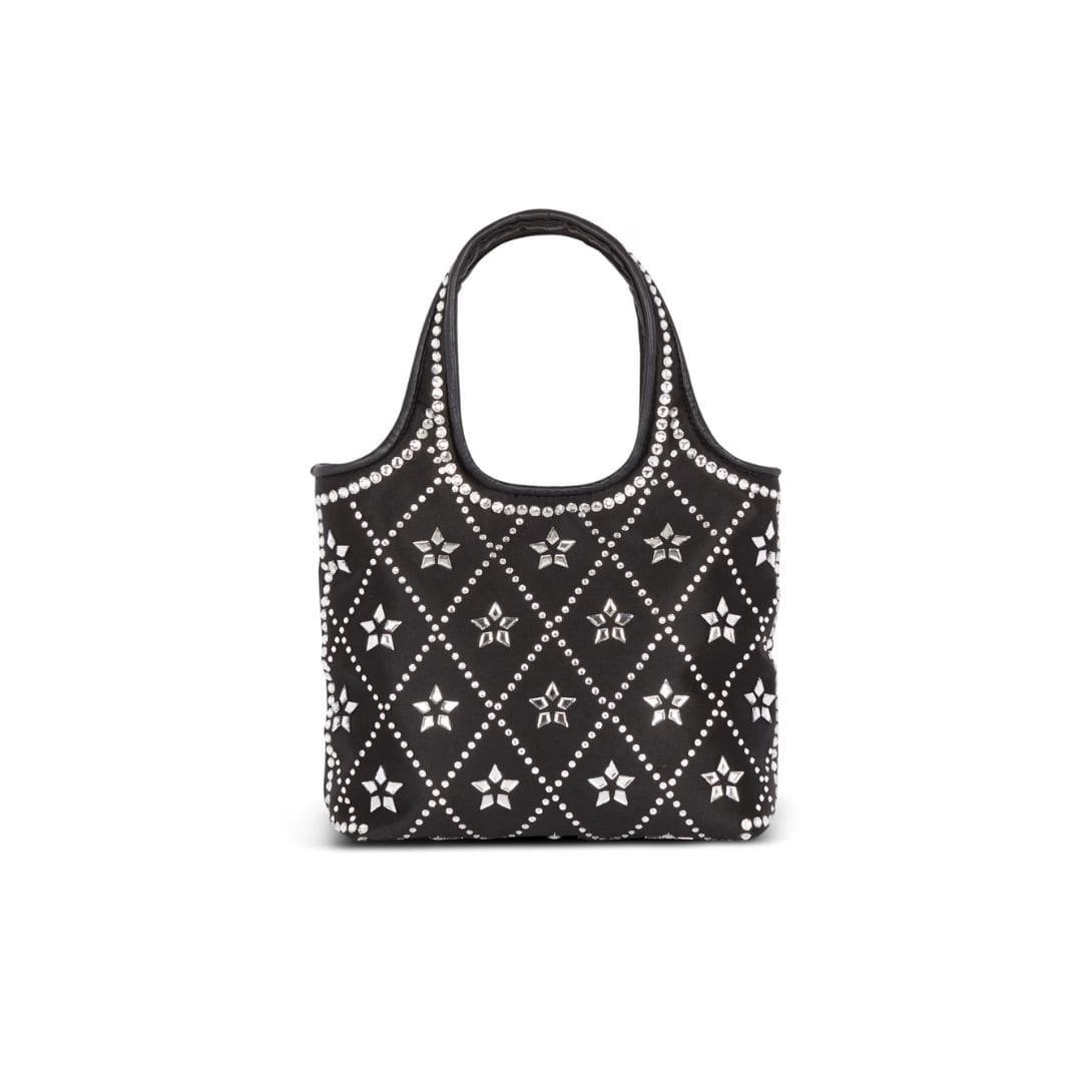 Designed in a classic tote bag shape, this accessory is adorned with an all-over crystal stars pattern, reflecting sophistication and celestial charm.