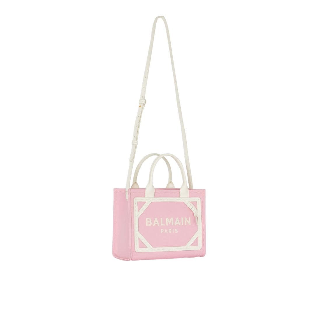 BALMAIN B-ARMY SMALL CANVAS AND LEATHER TOTE BAG