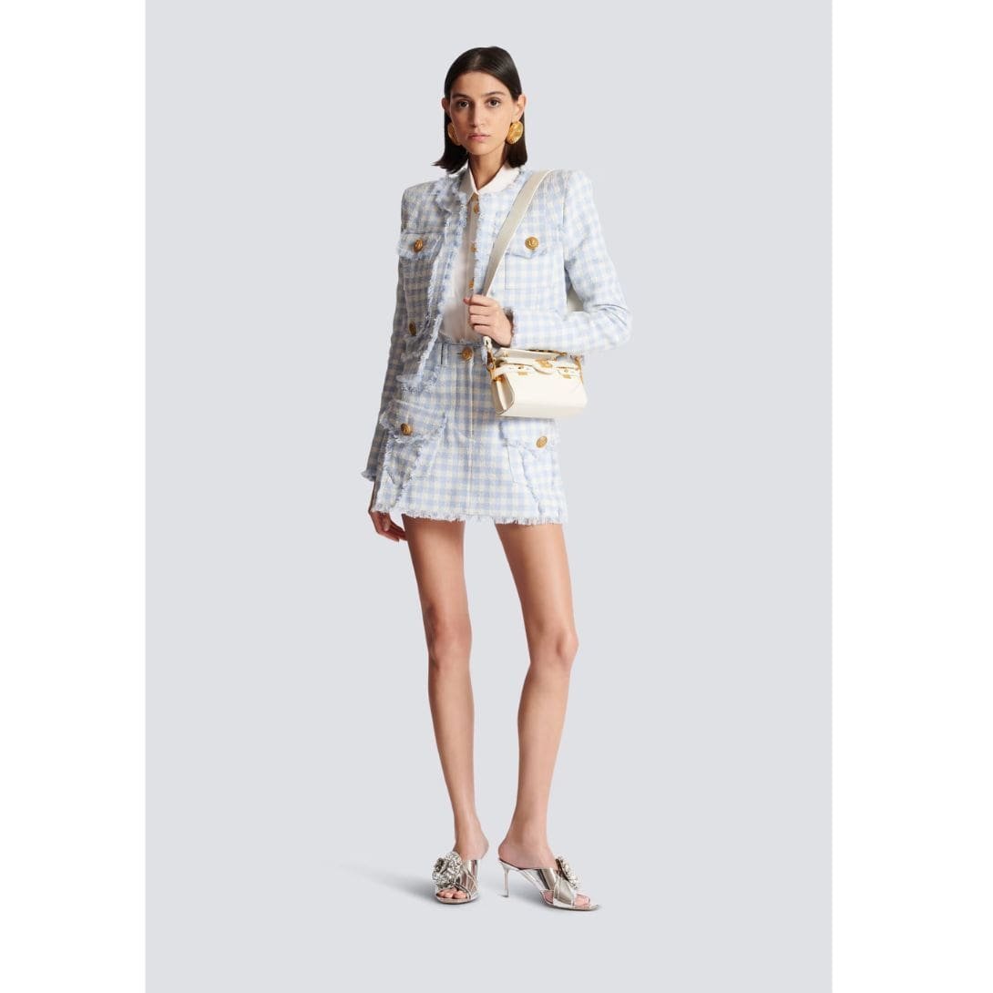 Crafted with meticulous attention to detail, this exquisite bag features a handle and detachable shoulder strap, both adorned with Balmain engraved snap hooks, offering versatility in carrying options. The flap closure, secured with a magnetic B clasp, ensures both ease of access and security.