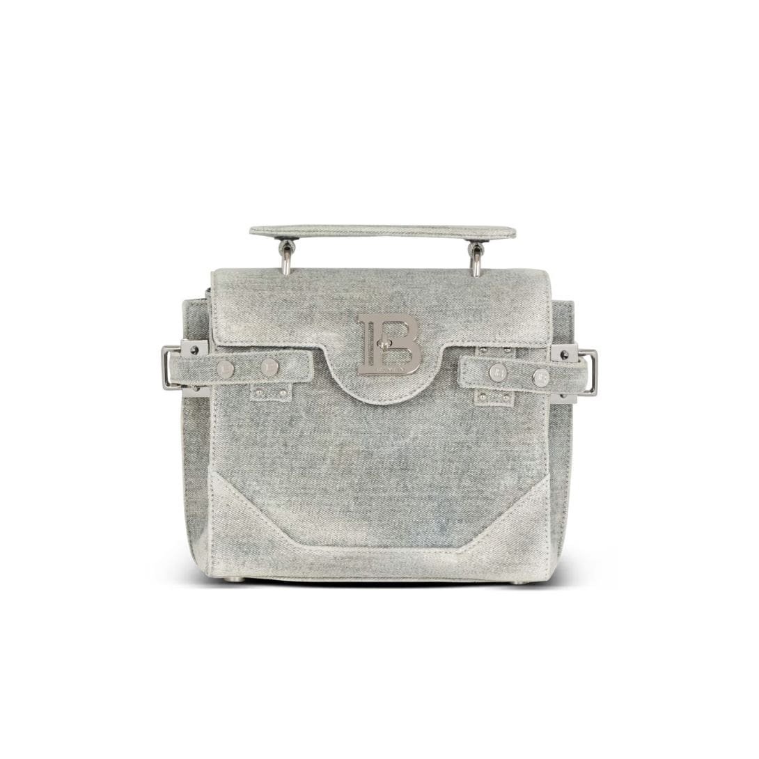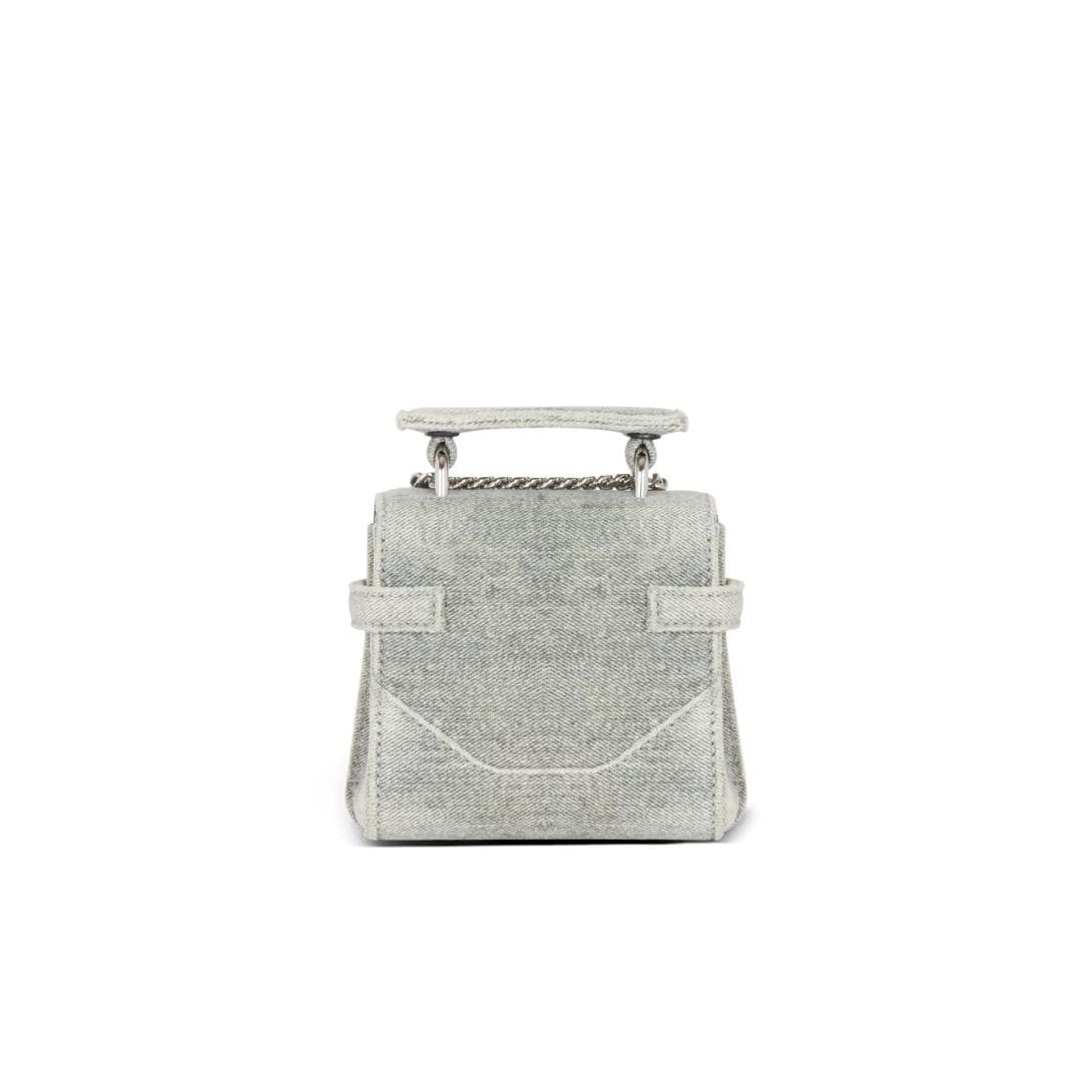 Presenting the Balmain 1945 Soft Faded Denim Mini Bag, a fusion of relaxed elegance and enduring sophistication.