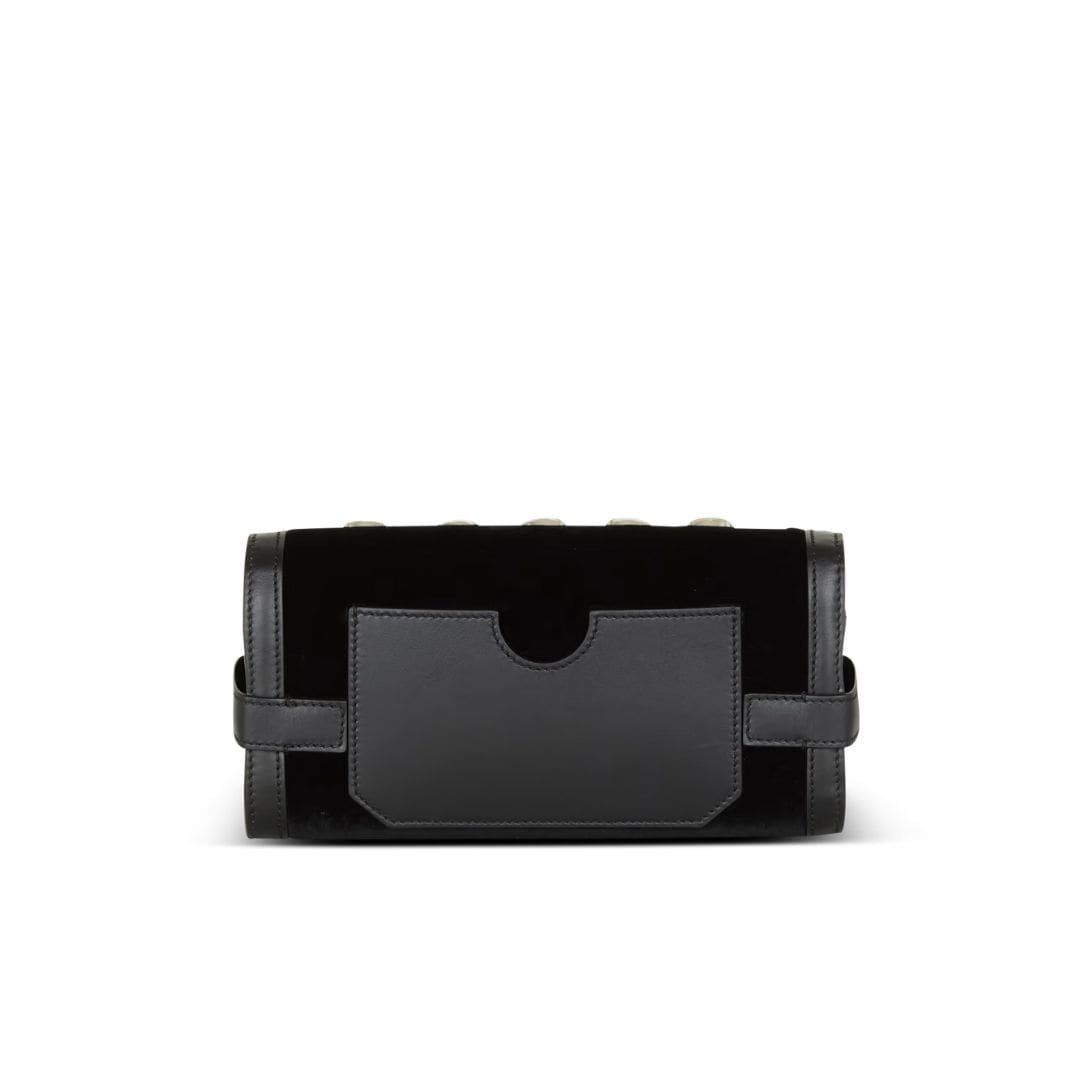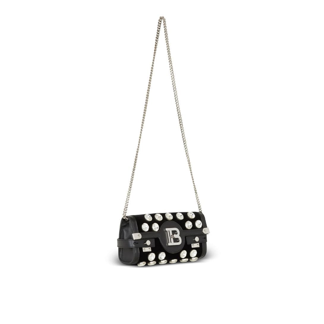 BALMAIN B-BUZZ POUCH 23 IN VELVET AND CRYSTALS