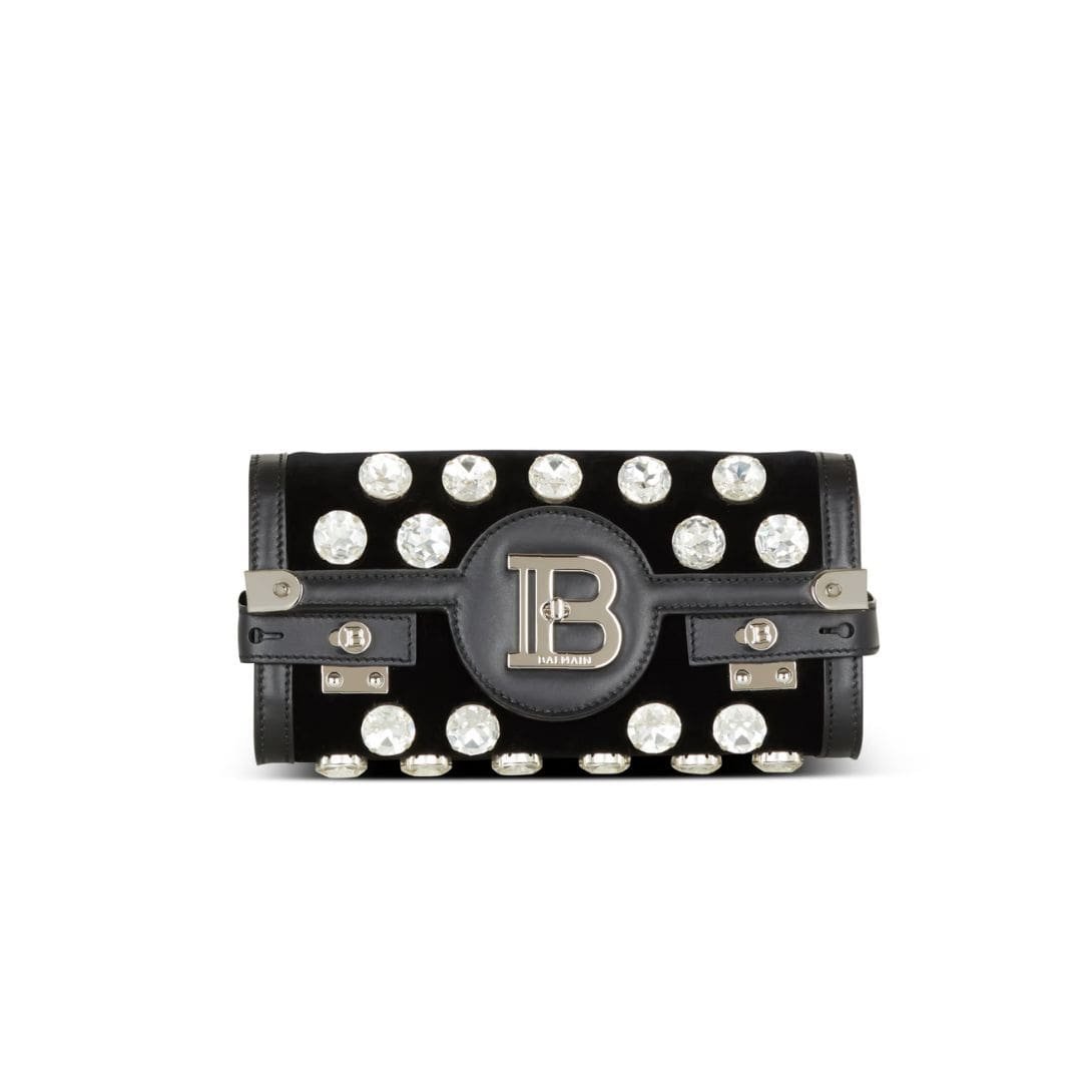 BALMAIN B-BUZZ SHOULDER 24 BAG IN EMBROIDERED VELVET