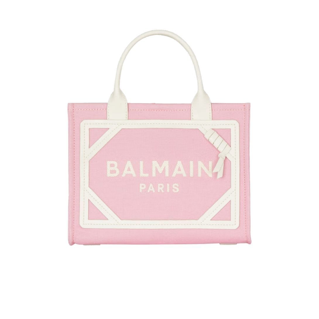 BALMAIN CANVAS AND LEATHER B-ARMY GROCERY BAG