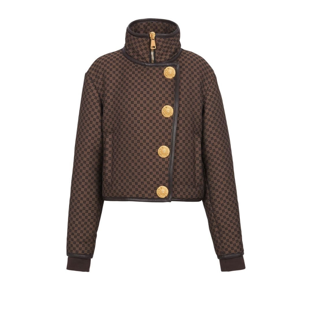 Embellished with Balmain’s distinctive hardware, including chunky silver zippers and polished buttons, the jacket exudes a sense of luxury and sophistication. These metallic accents add a touch of attitude to the piece, enhancing its rebellious charm.