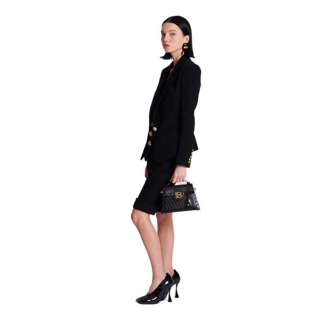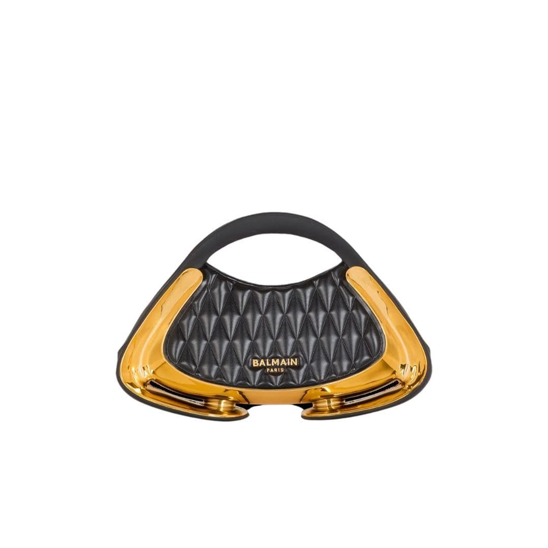 Attention to detail is evident in every aspect of the design, from the precision stitching to the gleaming hardware accents. The iconic Balmain logo is discreetly embossed on the front flap, adding a touch of understated luxury. A sleek turn-lock closure ensures security while adding a sophisticated finishing touch.