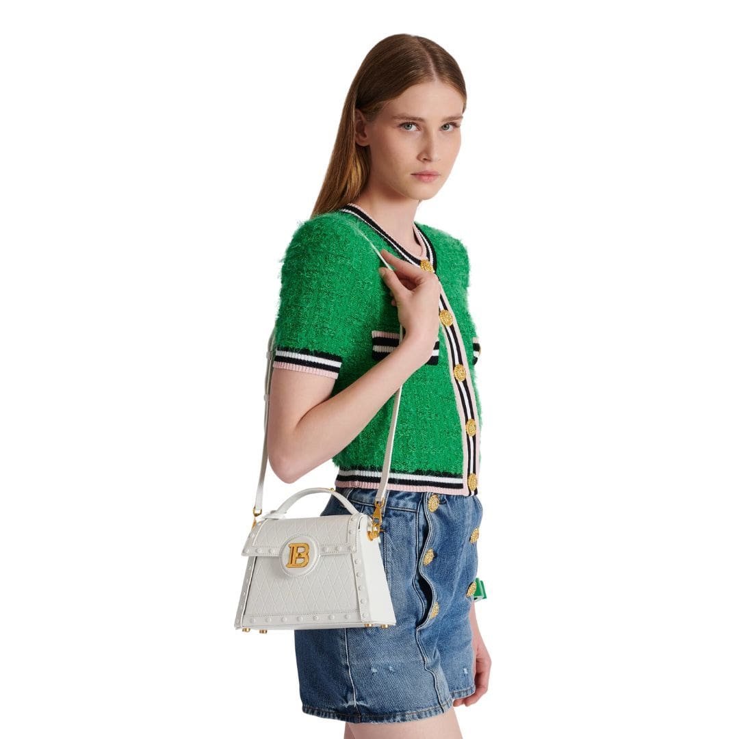 The attention to detail is evident in every aspect of the design. The iconic Balmain logo, embossed or delicately engraved, adds a touch of prestige to the bag’s exterior, subtly signaling its esteemed heritage. Intricate hardware accents, such as the signature gold-tone metal studs or the distinctive twist-lock closure, further elevate its aesthetic appeal, while ensuring security and functionality.