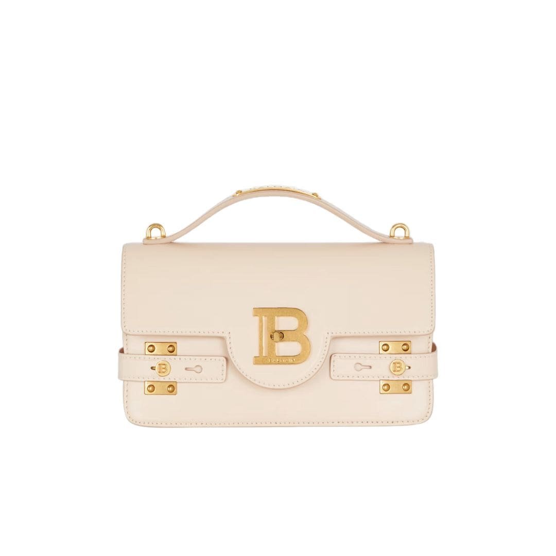 The attention to detail is evident in every aspect of the design, from the precision stitching to the meticulously embossed Balmain logo, which serves as a hallmark of quality and authenticity. The bag features a top handle for easy carrying, as well as a detachable shoulder strap for added versatility, allowing it to be worn crossbody or carried as a chic clutch.