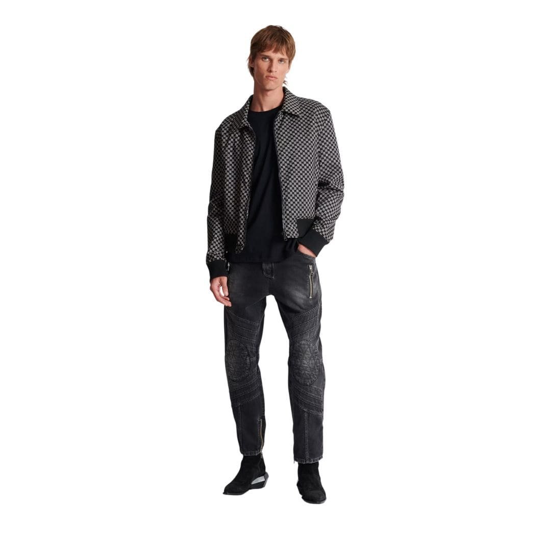 Attention to detail is evident in every aspect of the jacket’s design. From the sleek zipper closure adorned with the Balmain logo to the meticulously finished seams, every element reflects the brand’s commitment to quality and refinement.