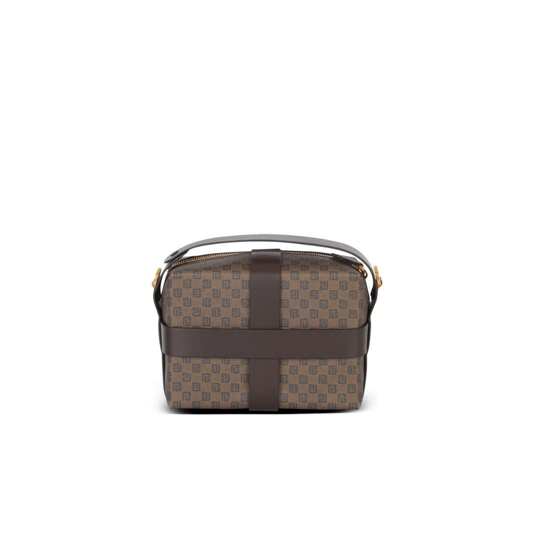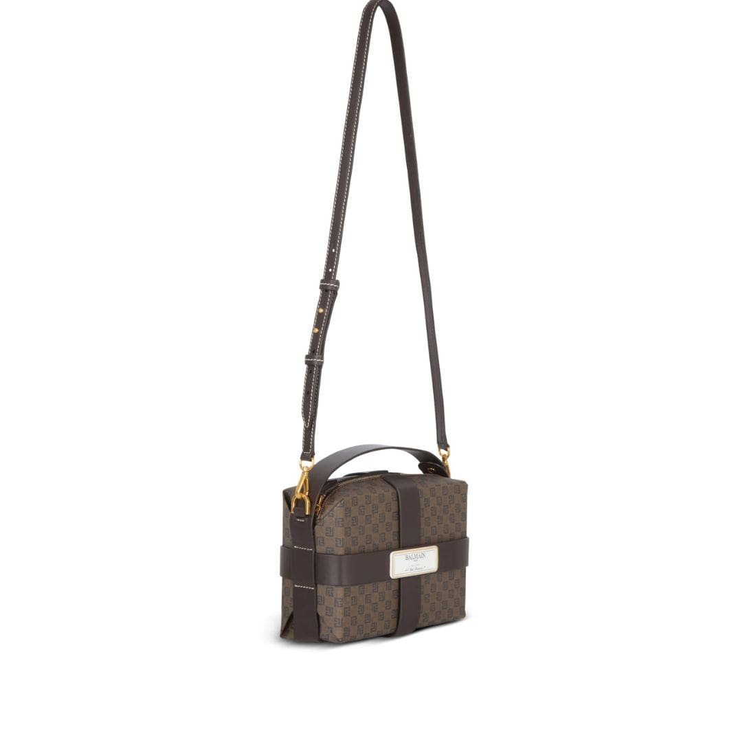 BALMAIN MINI MONOGRAM CANVAS AND LEATHER BOX BAG