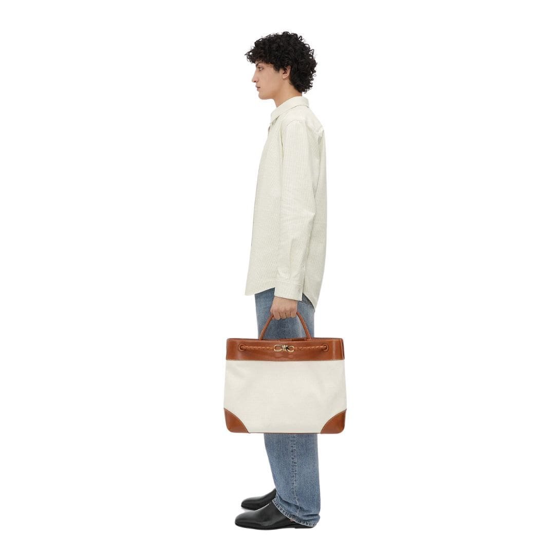 Equipped with dual top handles and a detachable shoulder strap, the Large Andiamo Bag offers multiple carrying options for added convenience and versatility. Whether carried by hand, worn over the shoulder, or slung crossbody, it exudes effortless elegance and sophistication.