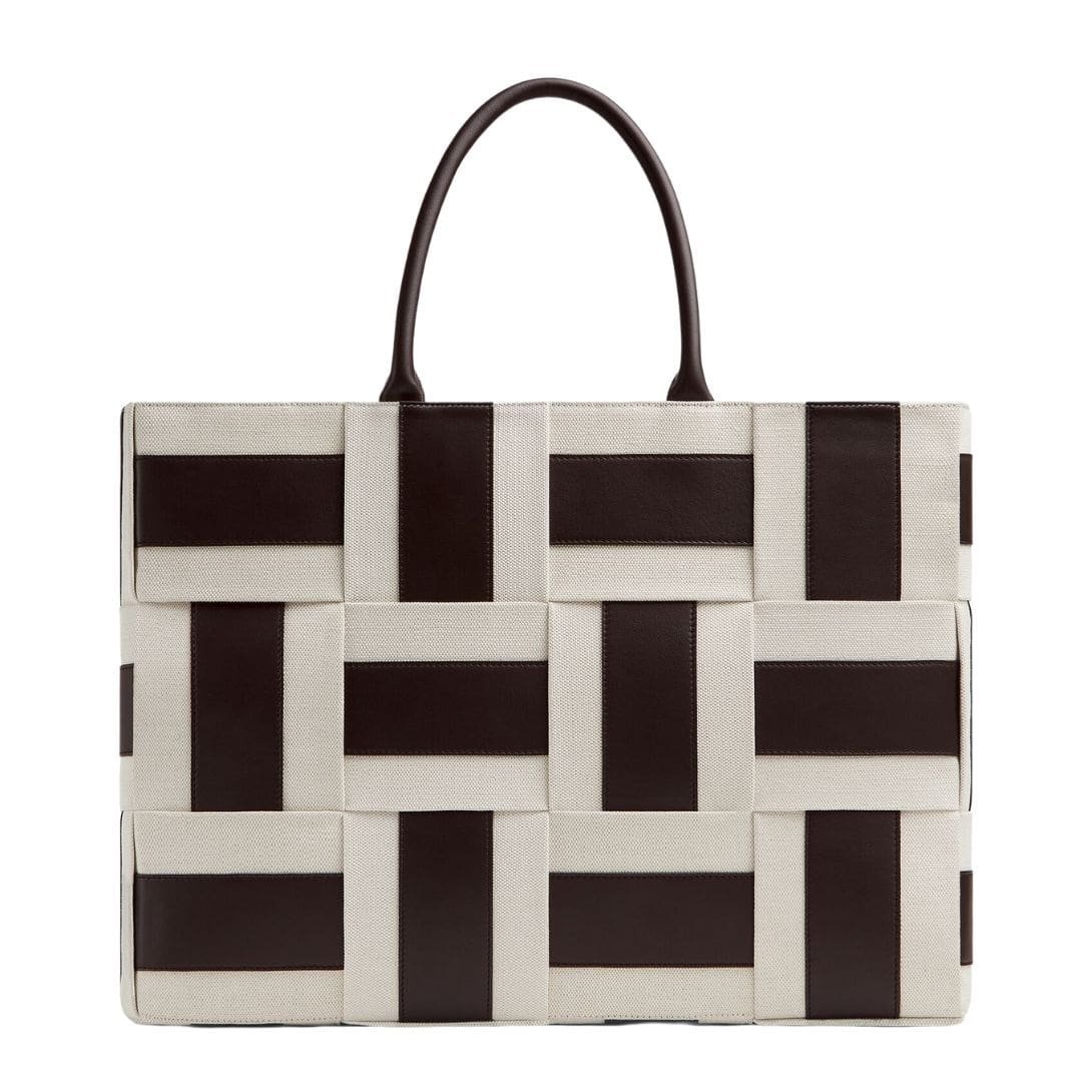 Crafted from premium leather, the Large Arco Tote showcases Bottega Veneta’s signature intrecciato weave, a hallmark of the brand’s meticulous attention to detail and heritage in leatherworking. The woven leather not only enhances the bag’s aesthetic appeal but also adds durability and a unique texture, ensuring it stands out in any setting.
