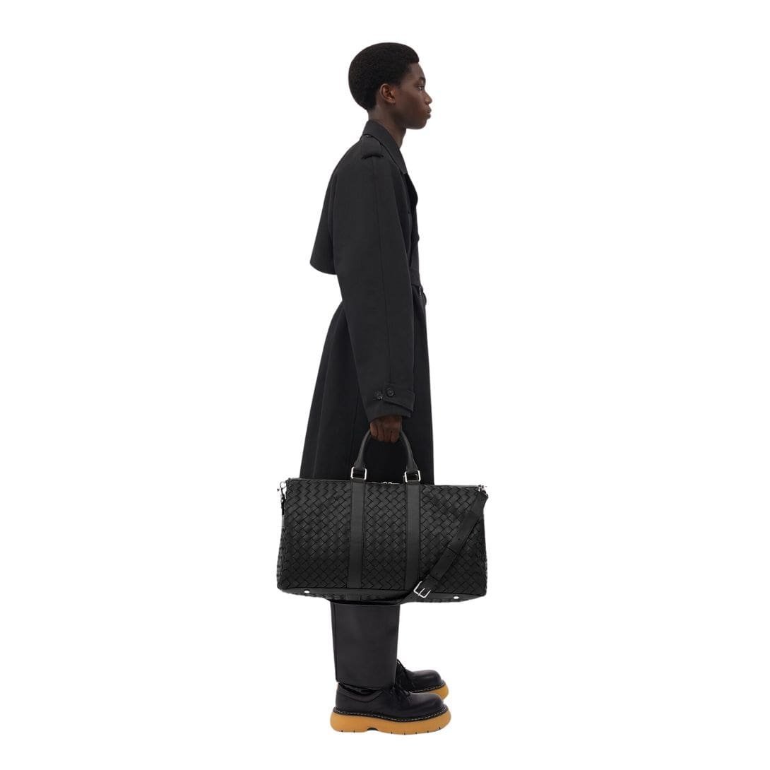 At first glance, the duffle exudes sophistication with its iconic intrecciato weave, a signature technique of Bottega Veneta. The interwoven leather strips not only add a touch of texture but also showcase the brand’s commitment to meticulous craftsmanship. Available in a range of classic and contemporary hues, from rich chocolate brown to sleek black, there’s a shade to suit every discerning taste.