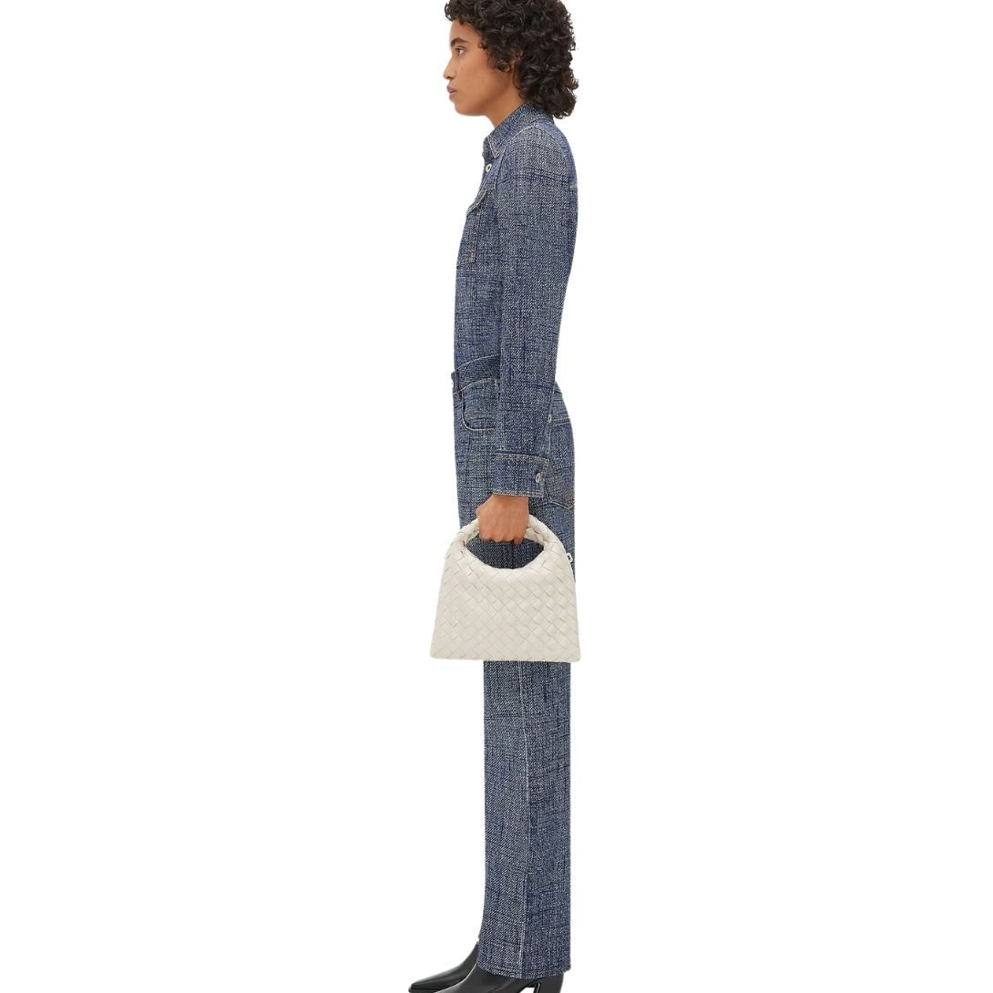 Crafted with precision and care, this mini cross-body bag showcases signature Intrecciato craftsmanship in smooth calf leather. Its compact silhouette and refined construction make it an elegant everyday essential with a luxurious twist.