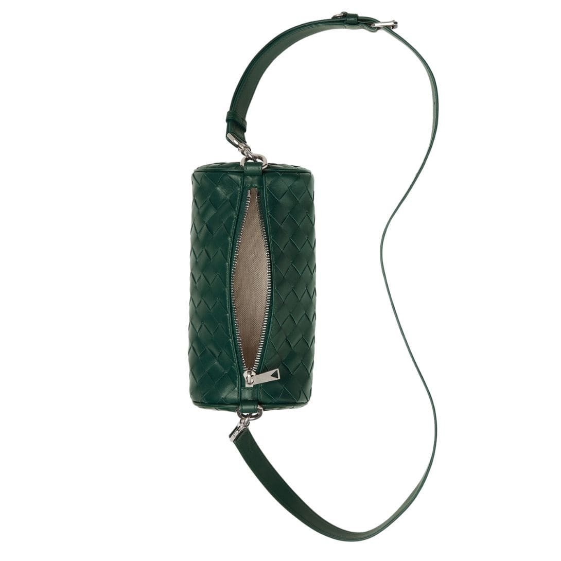Though compact in size, the Mini Intrecciato Barrel offers surprising functionality. Its interior is lined with sumptuous suede, providing a luxurious backdrop for storing essentials such as keys, cards, and lipstick. Whether carried as a standalone statement piece or slipped inside a larger bag for organization, this miniature marvel effortlessly combines style and practicality.