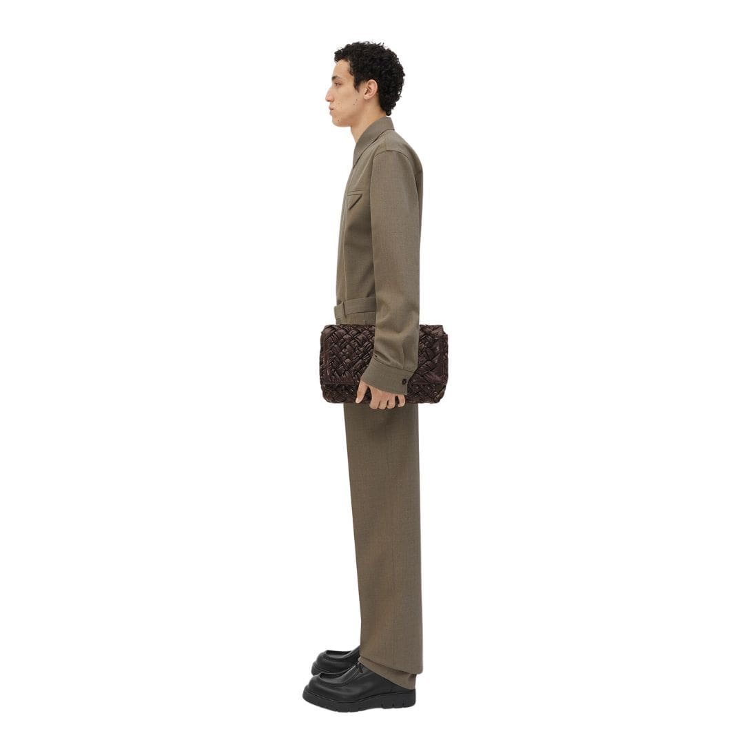 Crafted from premium calfskin leather, the Rumple Messenger features a unique crinkled texture that gives it a distinctive and contemporary edge. The leather is meticulously treated to achieve a soft yet durable finish, ensuring the bag not only looks exquisite but also withstands the rigors of daily use. The iconic intrecciato weave, synonymous with Bottega Veneta, subtly embellishes the bag, adding a touch of classic elegance without overwhelming its modern aesthetic.