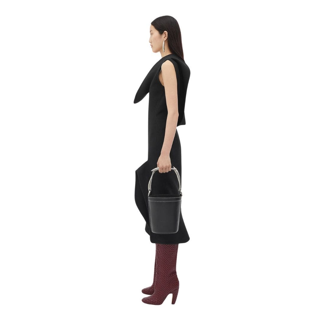 Crafted from premium leather, the Sardine Bucket showcases Bottega Veneta’s renowned expertise in leatherwork. The bag features a structured, bucket-shaped silhouette that offers both style and practicality. Its smooth, high-quality leather surface is complemented by the brand’s signature Intrecciato weave, a meticulous technique that involves interlacing strips of leather to create a unique, textured pattern. This iconic weave not only adds a touch of elegance but also enhances the durability of the bag.