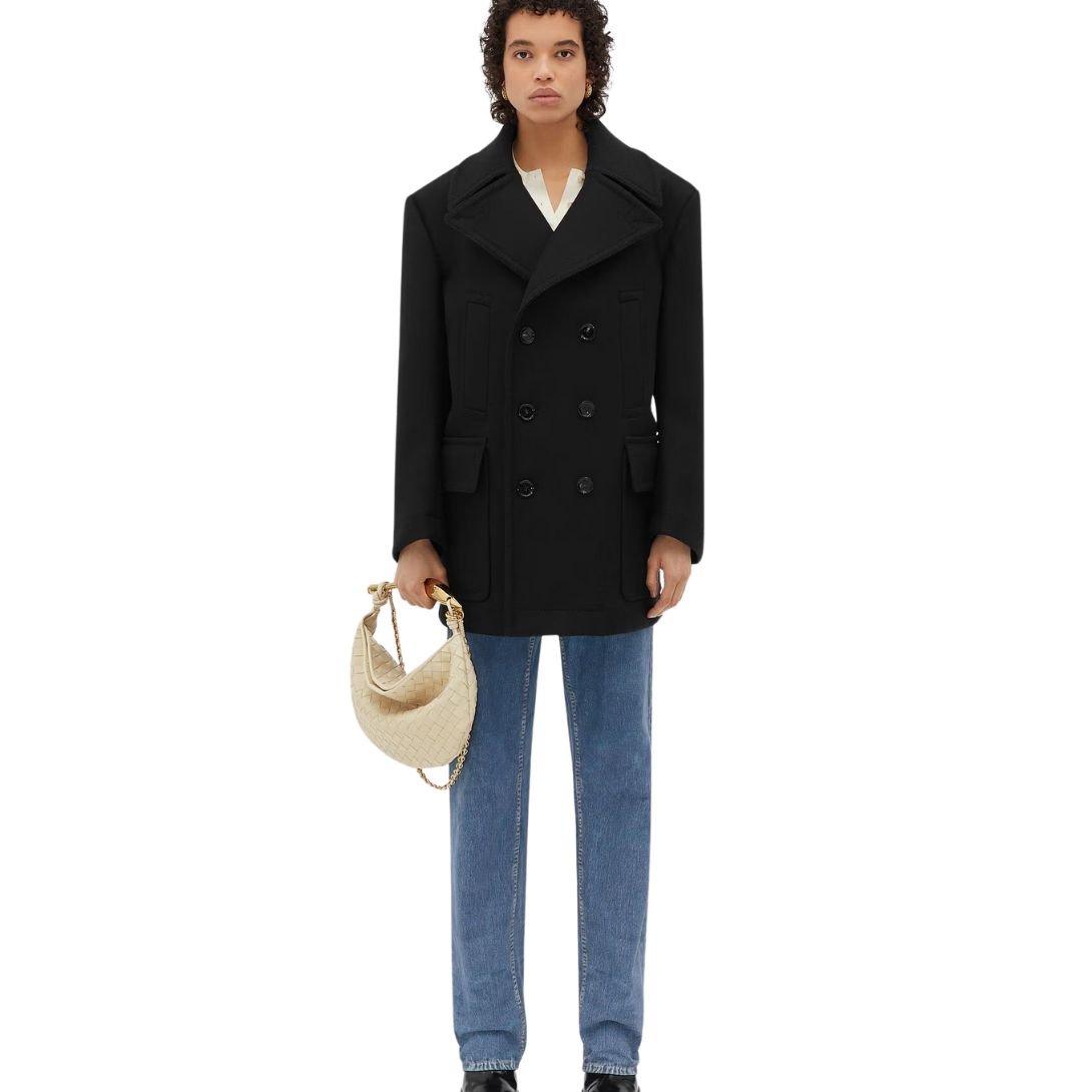 The interior is lined with lambskin bonded Intrecciato, echoing the exceptional craftsmanship seen on the exterior. The brass finish hardware subtly enhances the warm, neutral String color of the leather, delivering an understated yet luxurious touch.