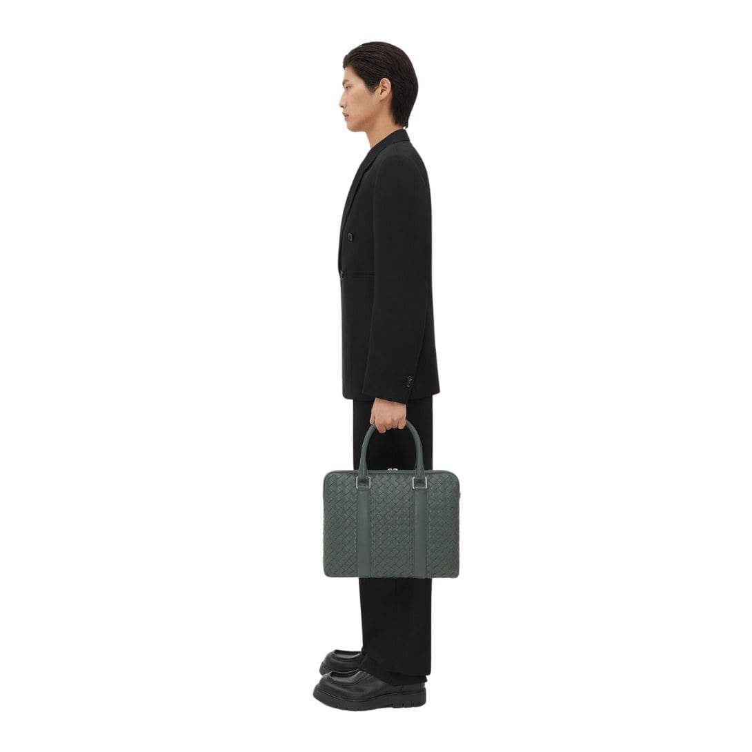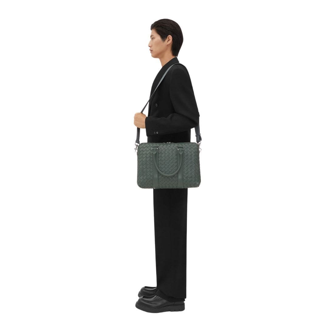 With its timeless design and impeccable craftsmanship, the Bottega Veneta Slim Intrecciato Briefcase is not just a functional accessory but a symbol of discerning taste and style. It transcends trends, making it a worthy investment for the modern gentleman who appreciates enduring quality and timeless elegance.