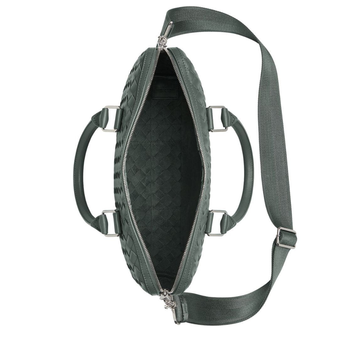 Exquisite craftsmanship is evident in every aspect of this briefcase. The supple leather exterior is expertly handwoven using Bottega Veneta’s signature Intrecciato technique, a hallmark of the brand’s artisanal heritage. The result is a luxurious texture that exudes understated luxury and impeccable taste.