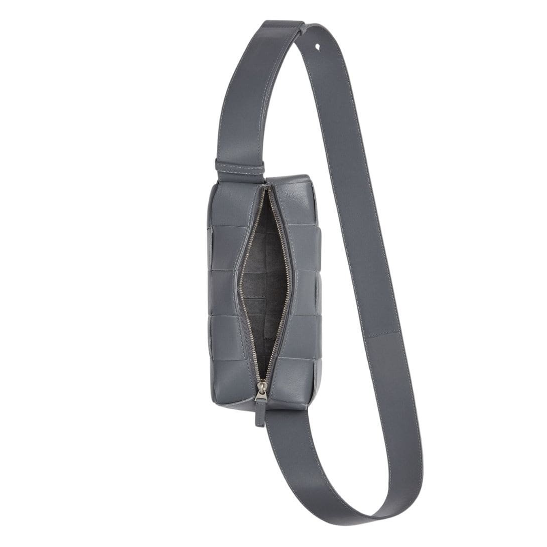Crafted from luxurious calfskin leather, each piece of the Small Brick Cassette exudes a refined elegance that is unmistakably Bottega Veneta. The leather is meticulously woven using the brand’s signature Intrecciato technique, creating a textured surface that captivates the eye with its intricacy and depth. The result is a tactile masterpiece that begs to be touched and admired.
