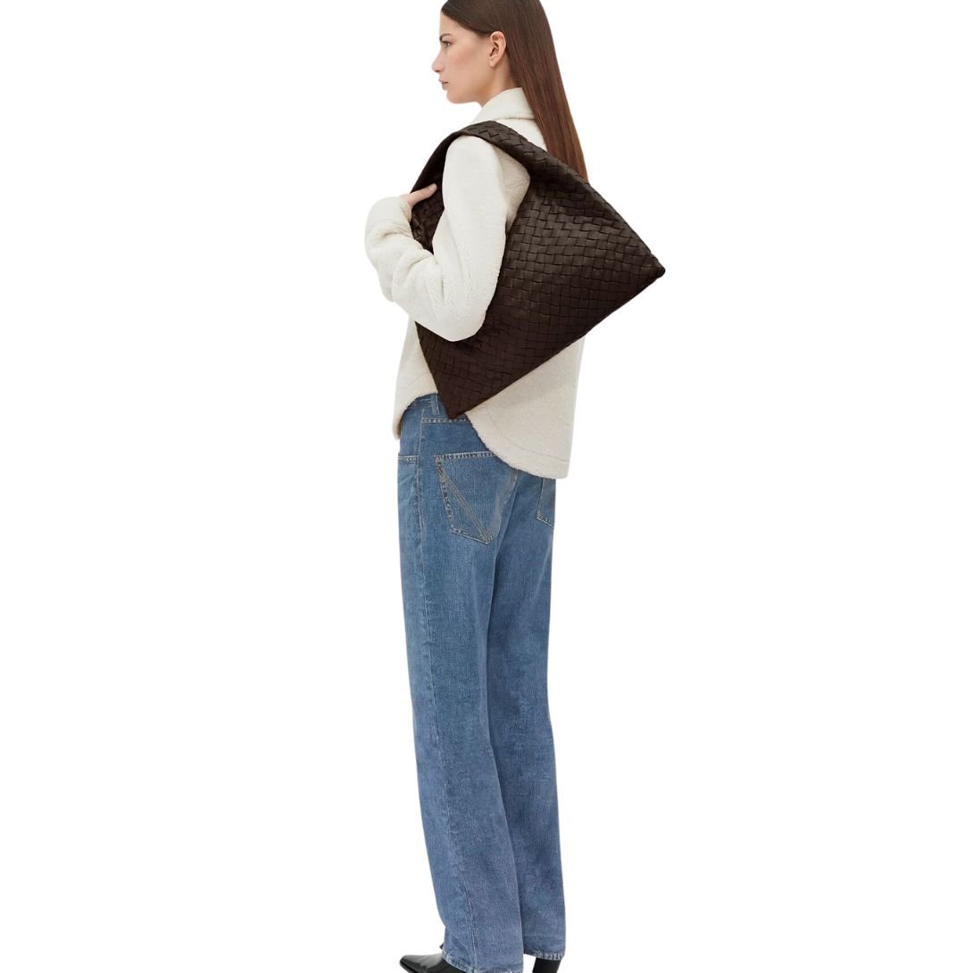 A refined statement of quiet luxury, the Hop Shoulder Bag showcases Bottega Veneta’s signature Intrecciato craftsmanship, meticulously woven in smooth calfskin leather. Sleek and sculptural, its softly curved silhouette is elevated by a spacious interior and clean, minimalist lines.