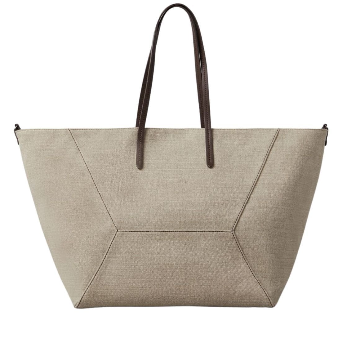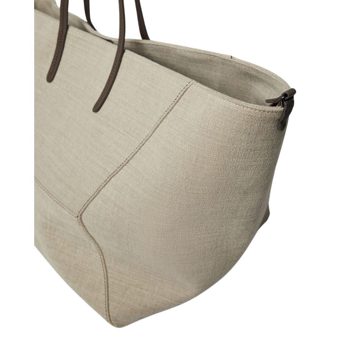 BRUNELLO CUCINELLI COTTON AND LINEN CANVAS LARGE SHOPPER BAG WITH MONILI