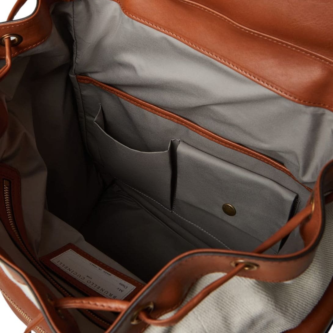 BRUNELLO CUCINELLI COTTON AND LINEN CAVALRY AND CALFSKIN CITY BACKPACK