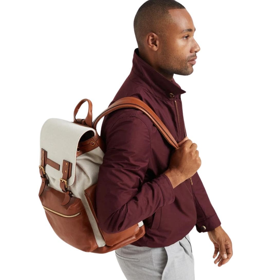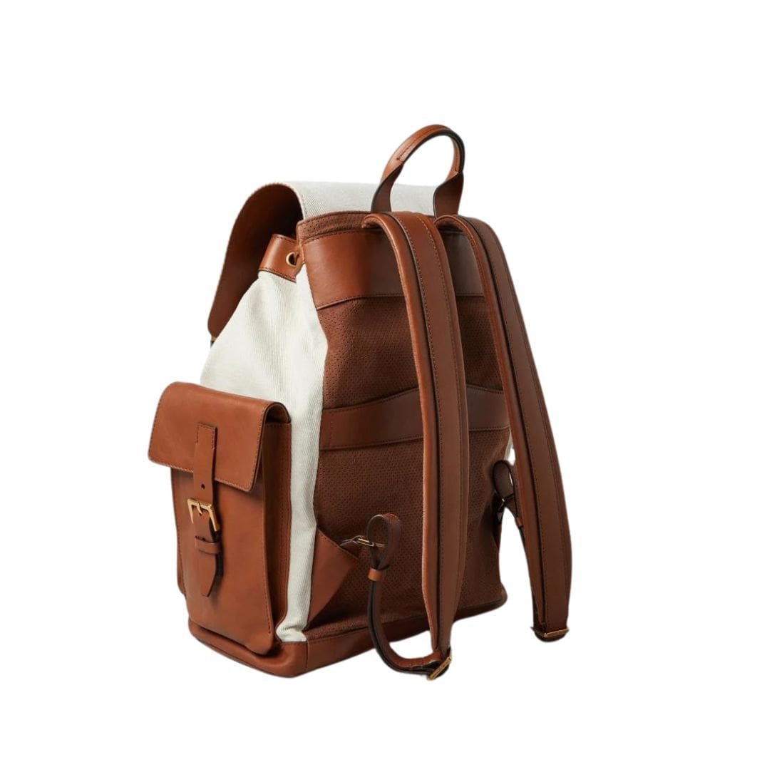 Be the first to review “BRUNELLO CUCINELLI COTTON AND LINEN CAVALRY AND CALFSKIN CITY BACKPACK”