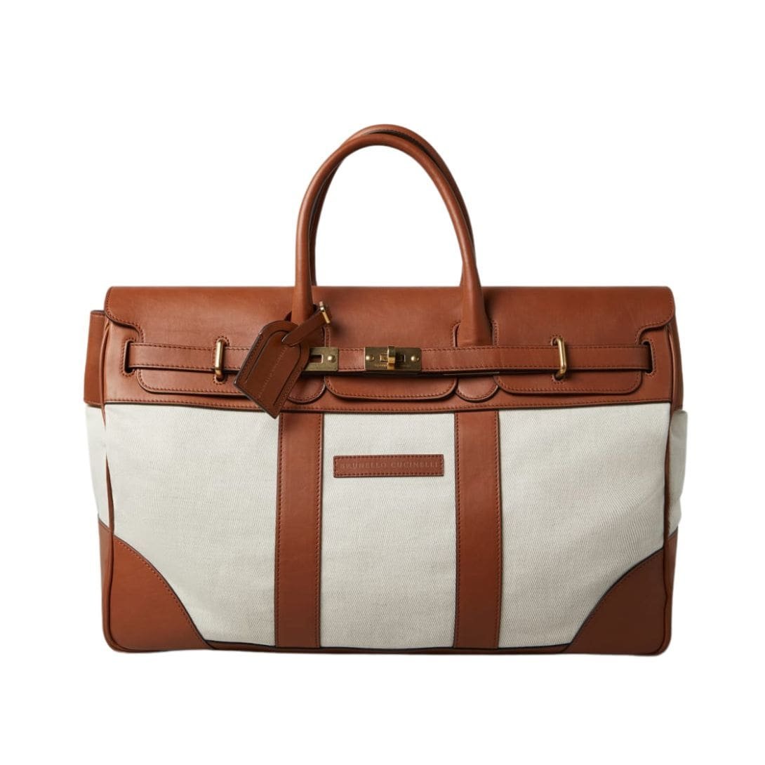 The Brunello Cucinelli Cotton and Linen Cavalry and Calfskin Trolley Bag seamlessly blends sophisticated design with practical functionality. Crafted from a luxurious combination of cotton and linen, this trolley bag exudes an air of refined elegance while ensuring durability and lightweight handling. The rich texture of the cavalry fabric is complemented by the understated sheen of the calfskin accents, creating a harmonious contrast that elevates the overall aesthetic. BRUNELLO CUCINELLI COTTON AND LINEN CAVALRY AND CALFSKIN TROLLEY BAG
