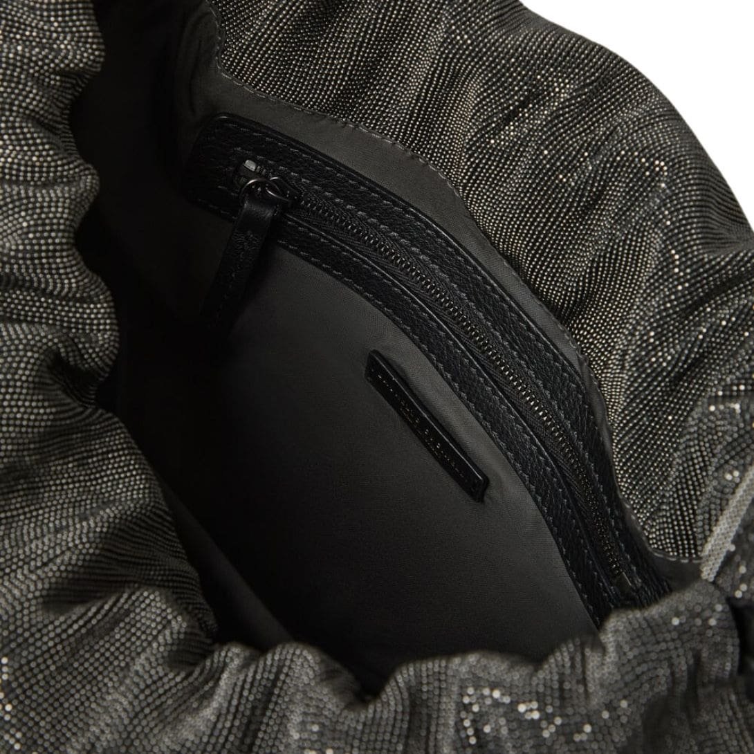 Experience contemporary elegance with the Brunello Cucinelli Precious Bag, marrying modern inspiration with the brand’s signature feminine touches. Its surface is adorned with shimmering monili embroidery, casting a luminous glow on any attire. The practical shoulder strap, featuring rows of shiny monili, adds both style and functionality.