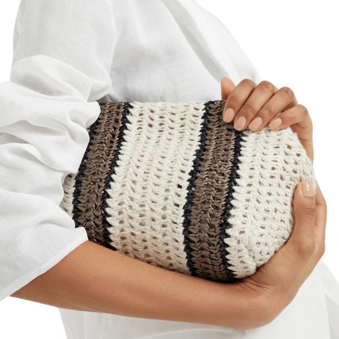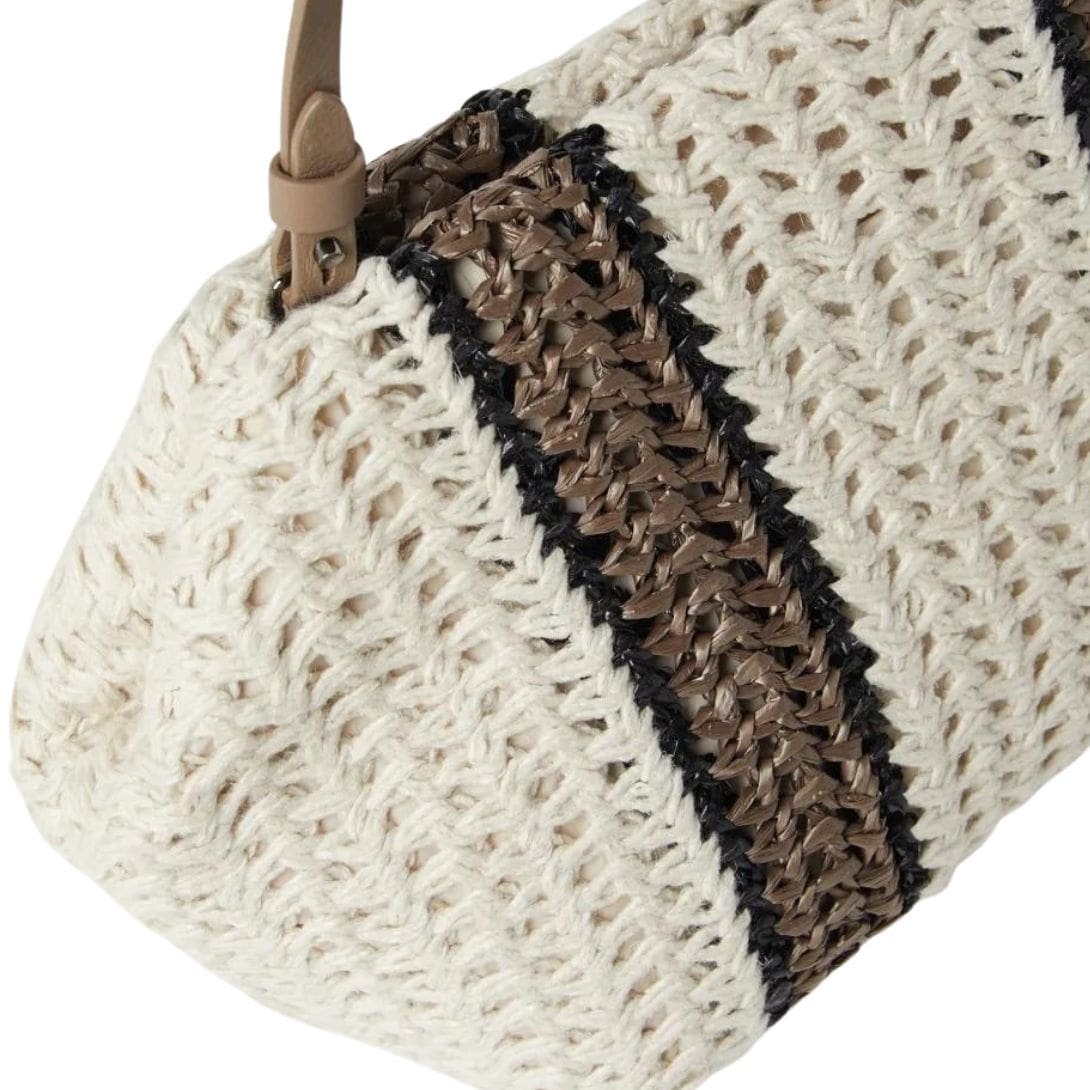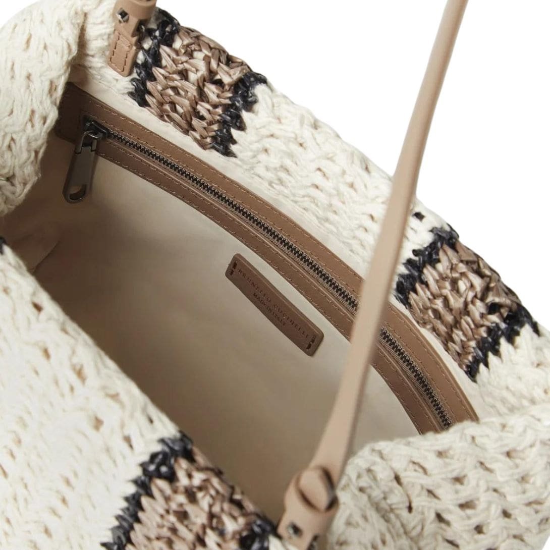 BRUNELLO CUCINELLI RAFFIA-EFFECT KNIT STRIPED BAG